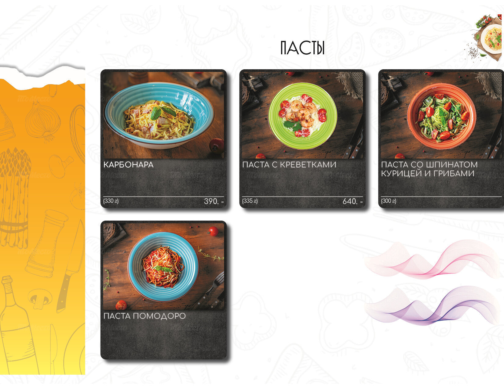 - Кухня: европейская, европейская итальянская итальянская