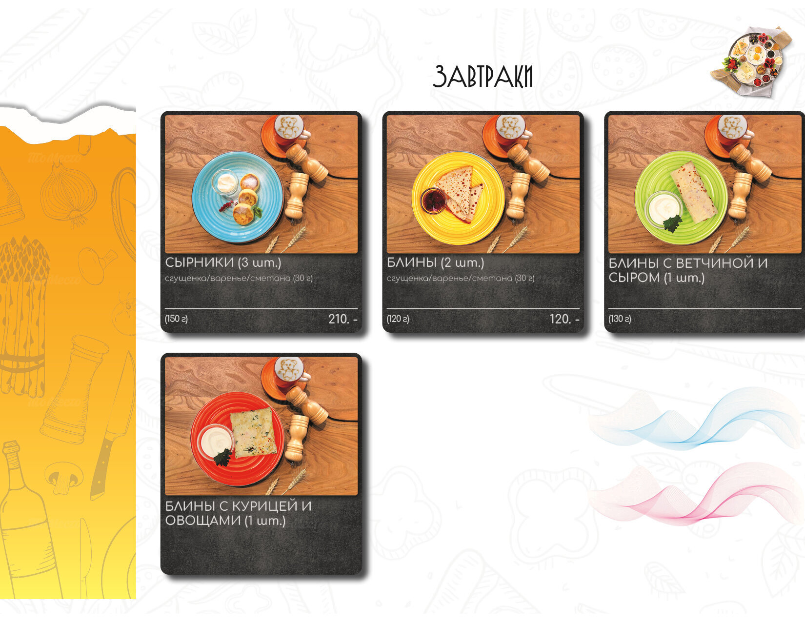 - Завтрак: Ежедневно, Весь день, От 130 руб.