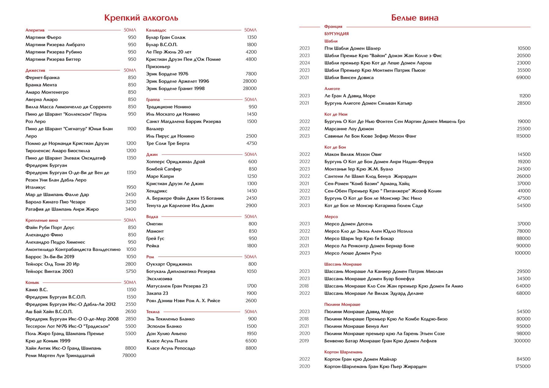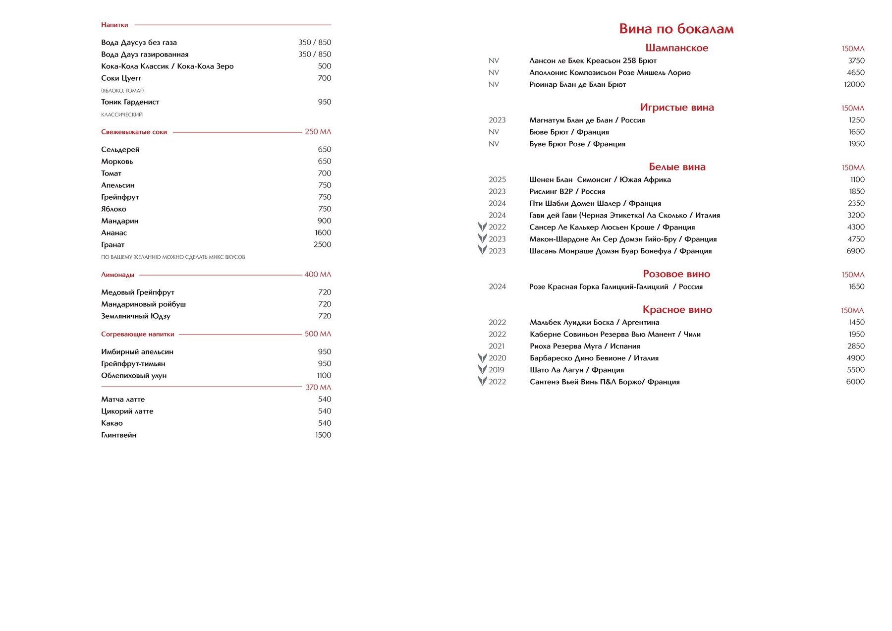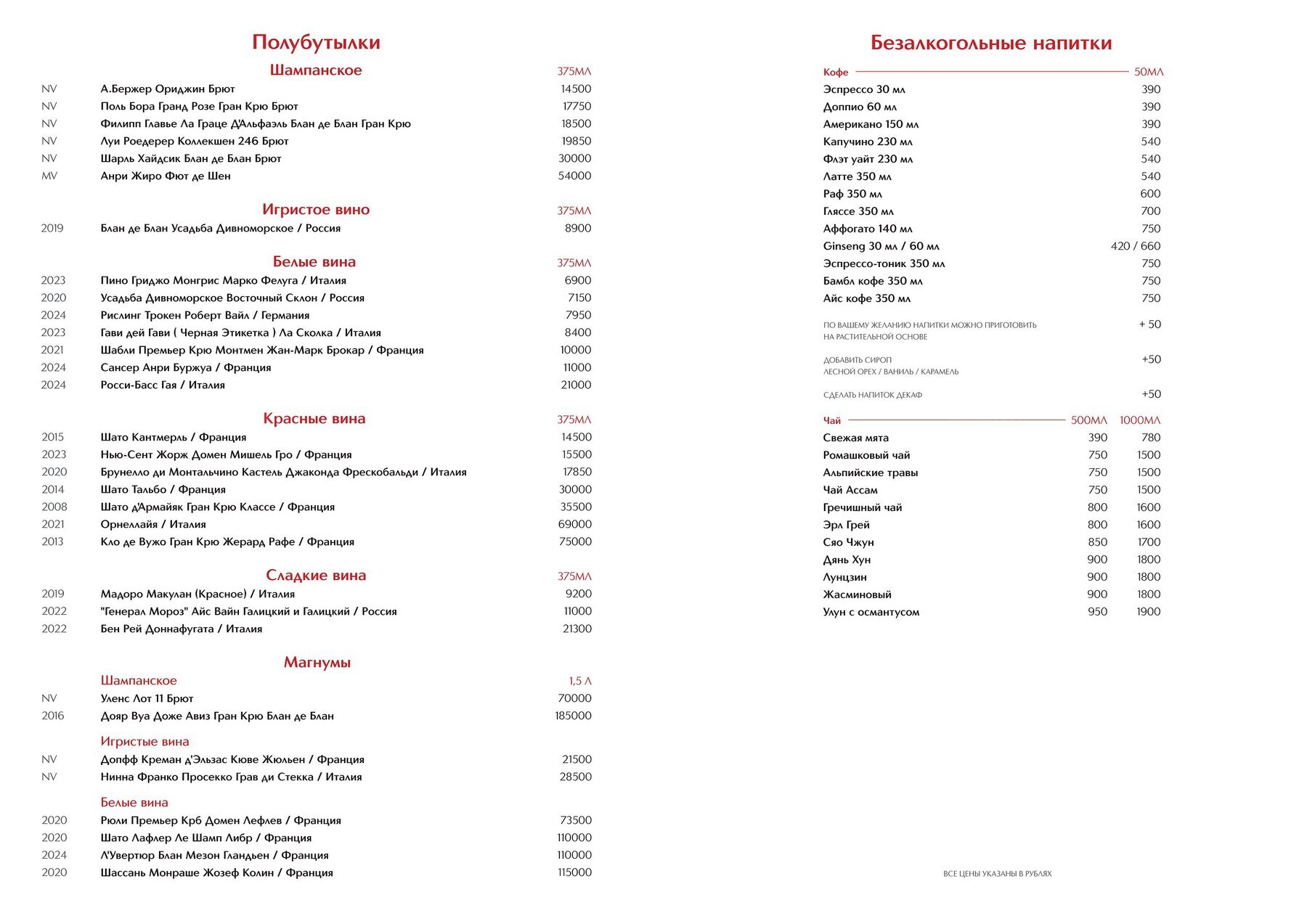 Меню и цены