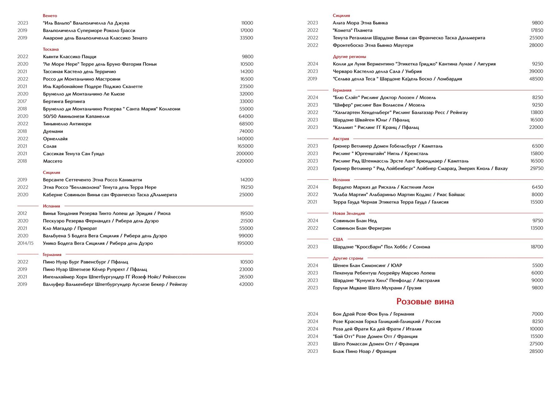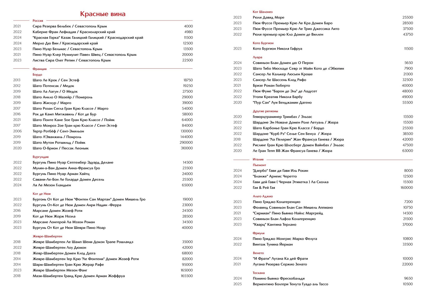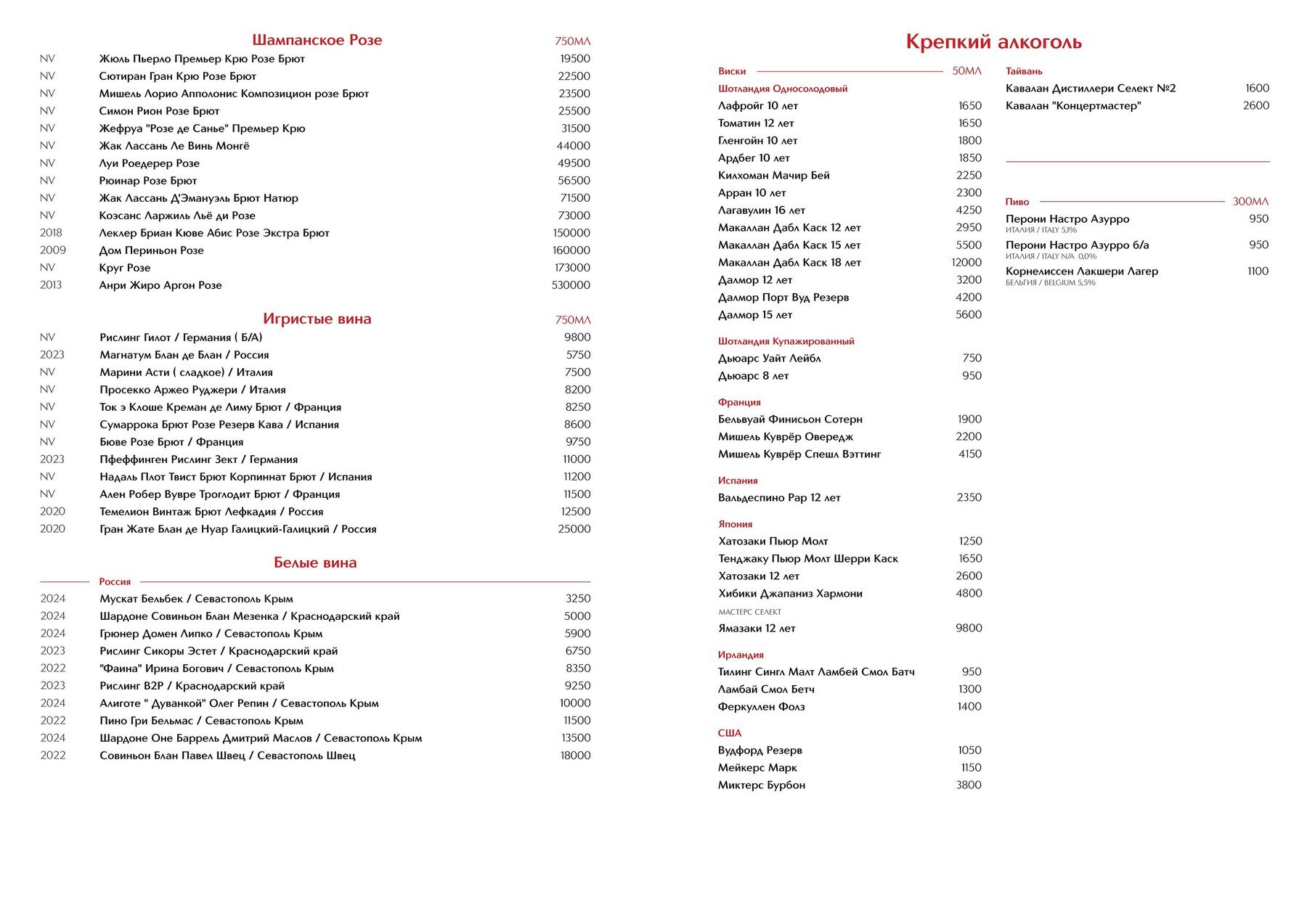 Меню и цены