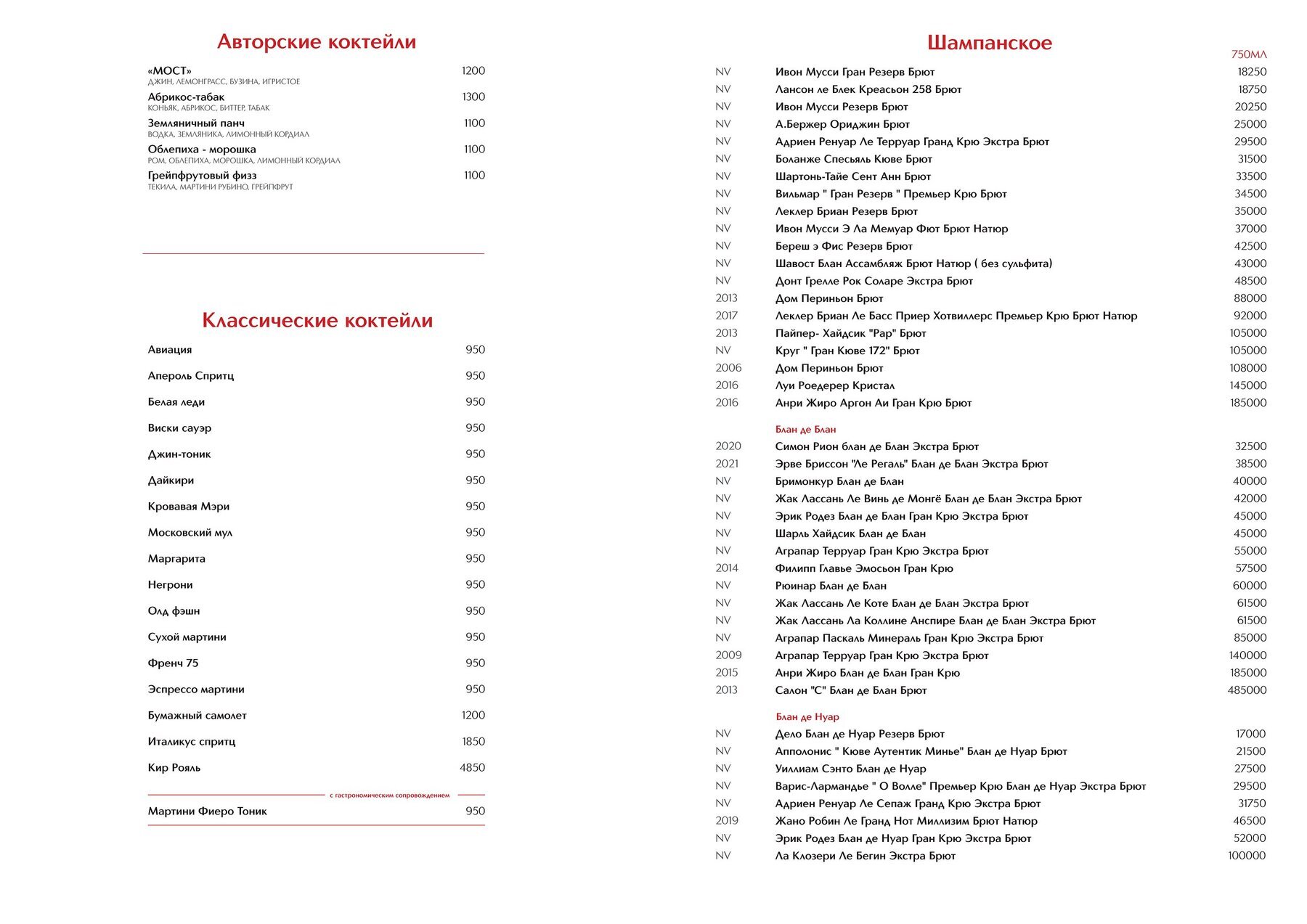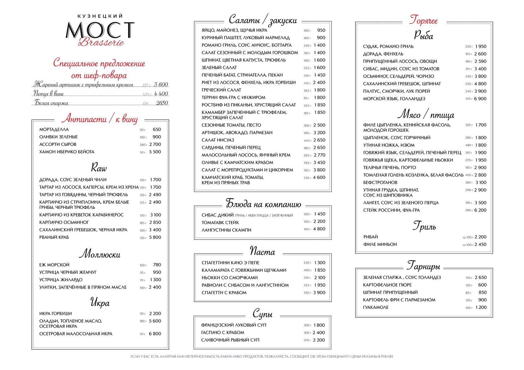 Меню и цены ресторана Brasserie Кузнецкий мост на Кузнецком Мосту фото 1