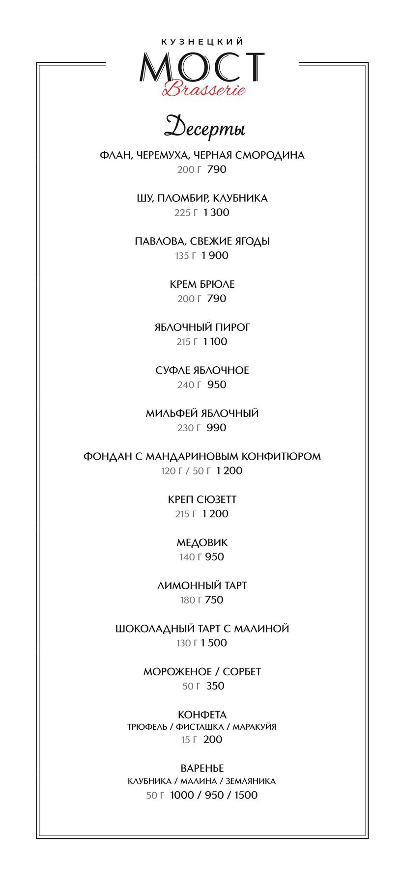 Меню и цены ресторана Brasserie Кузнецкий мост на Кузнецком Мосту фото 4