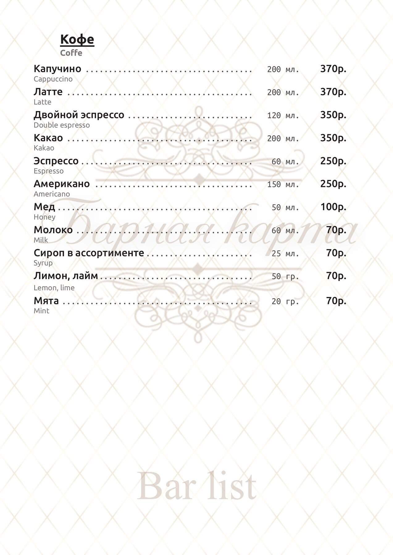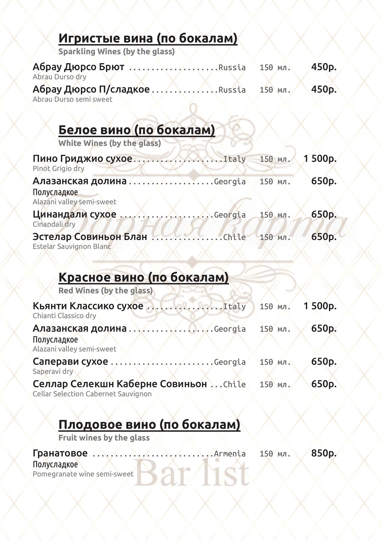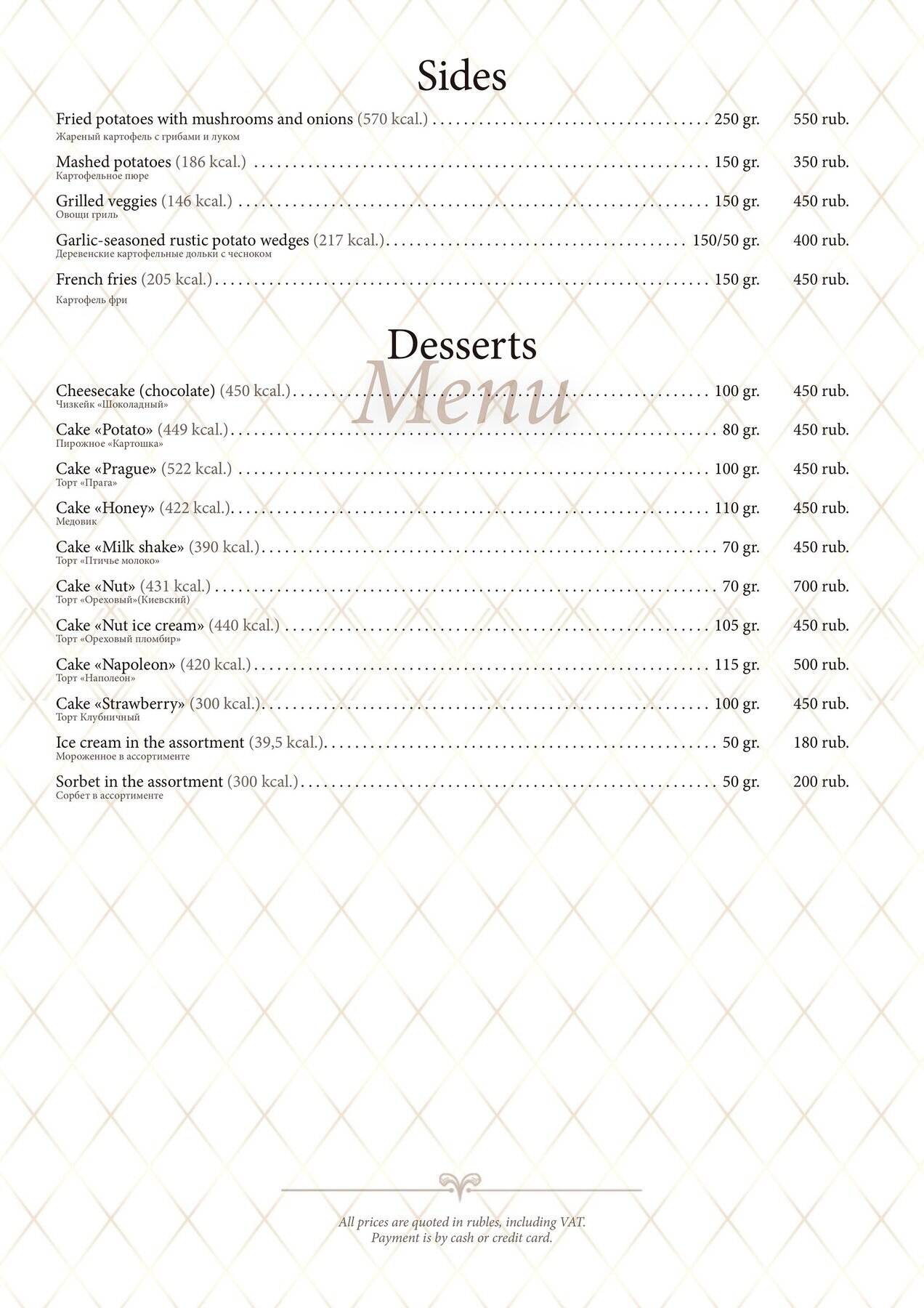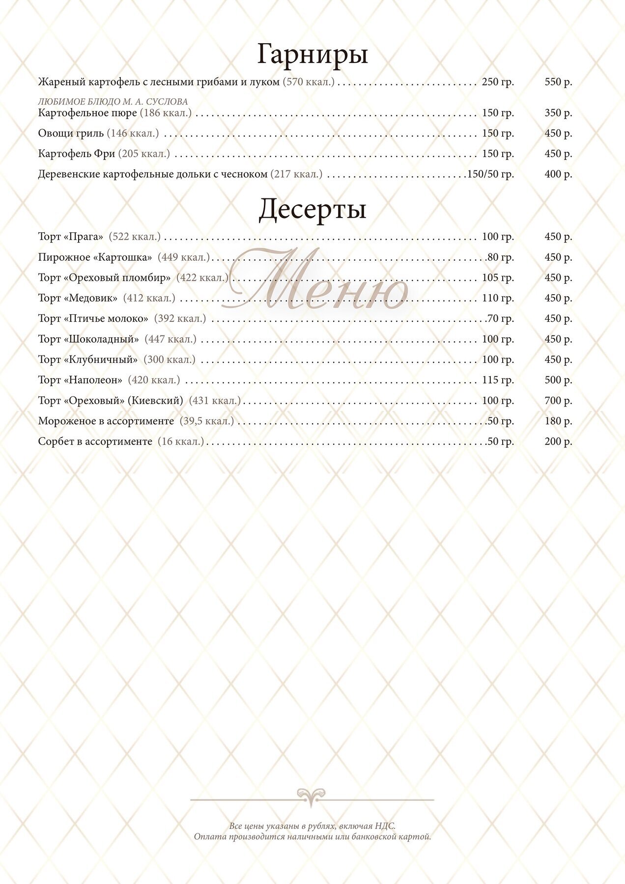 Меню и цены