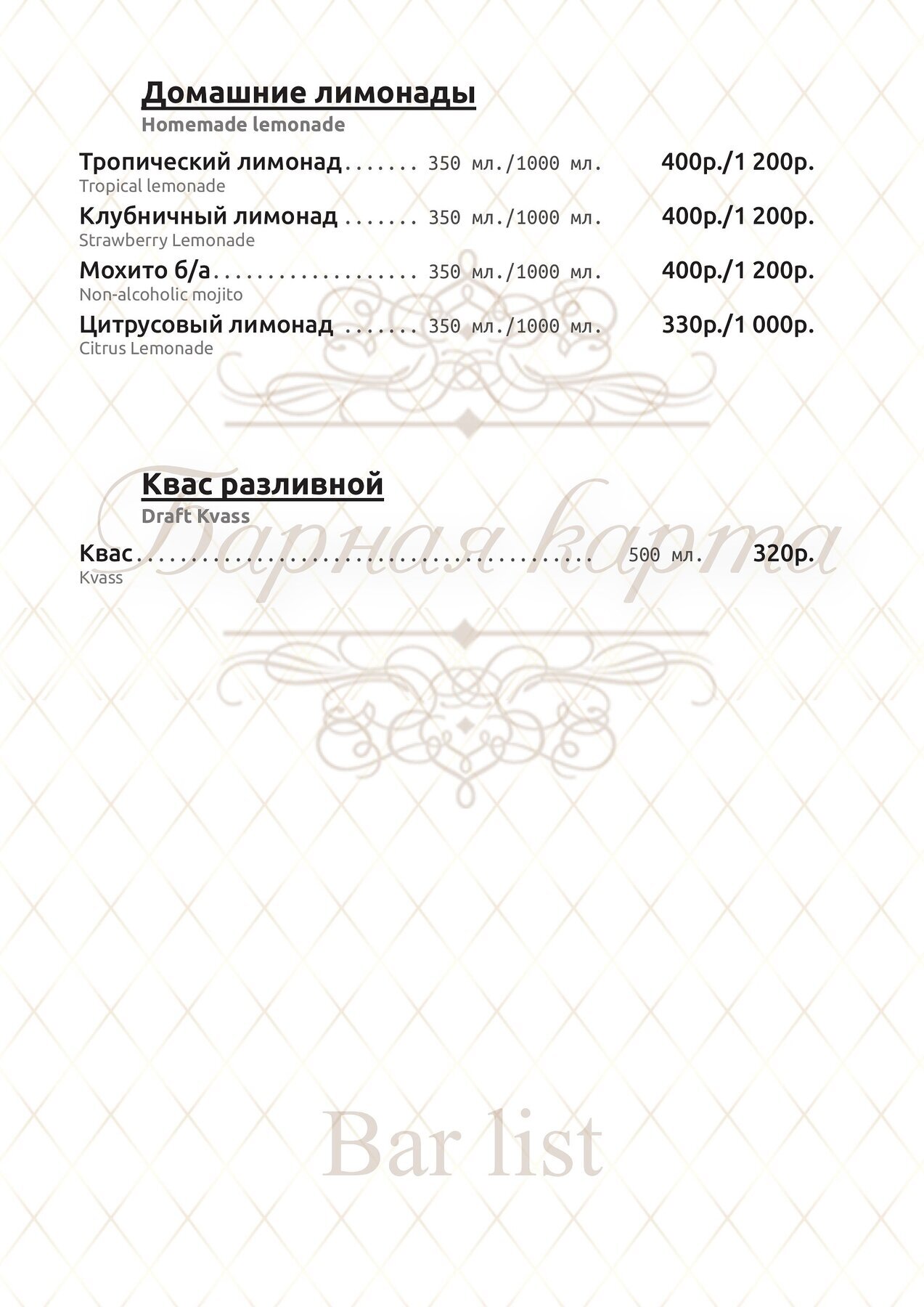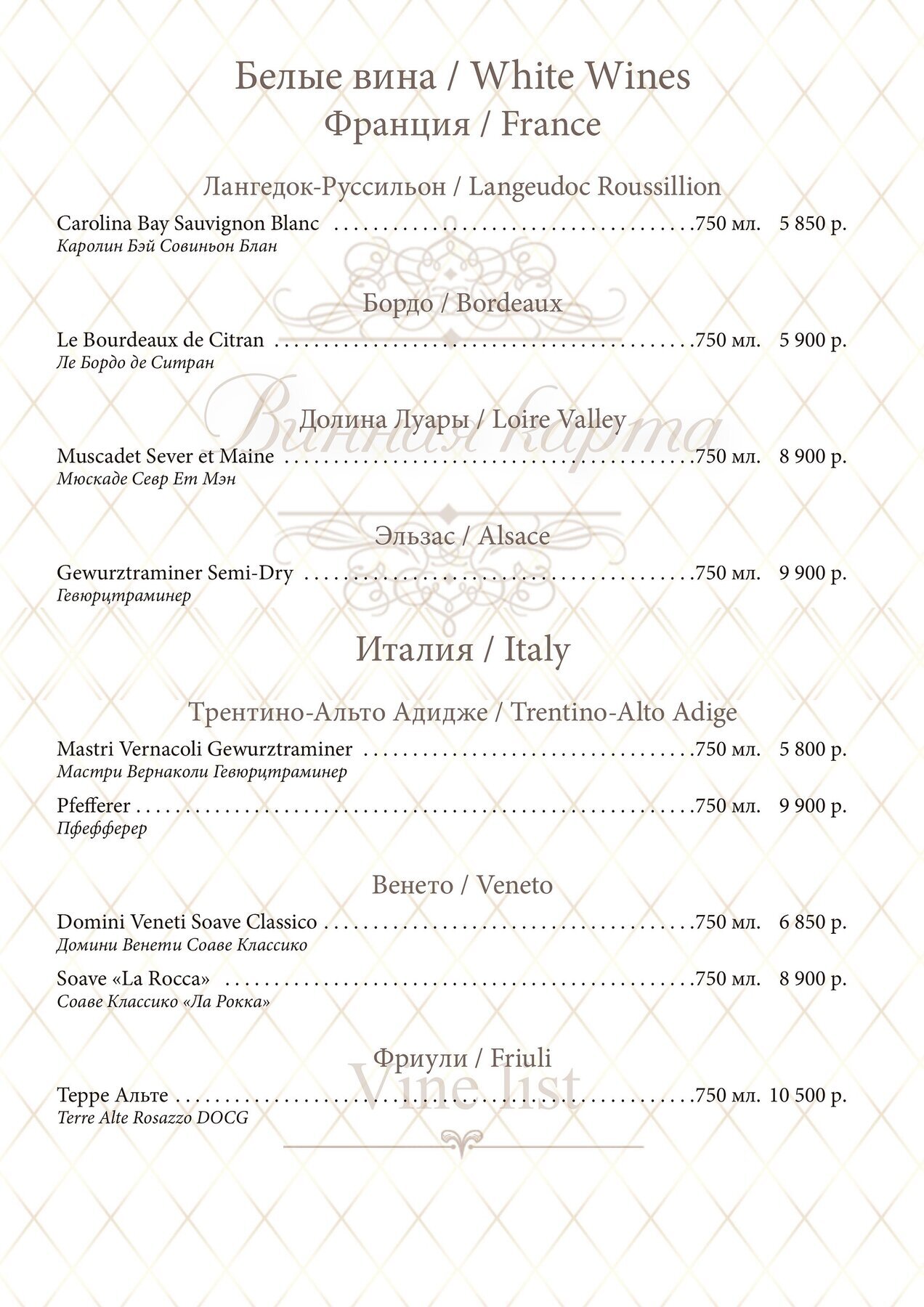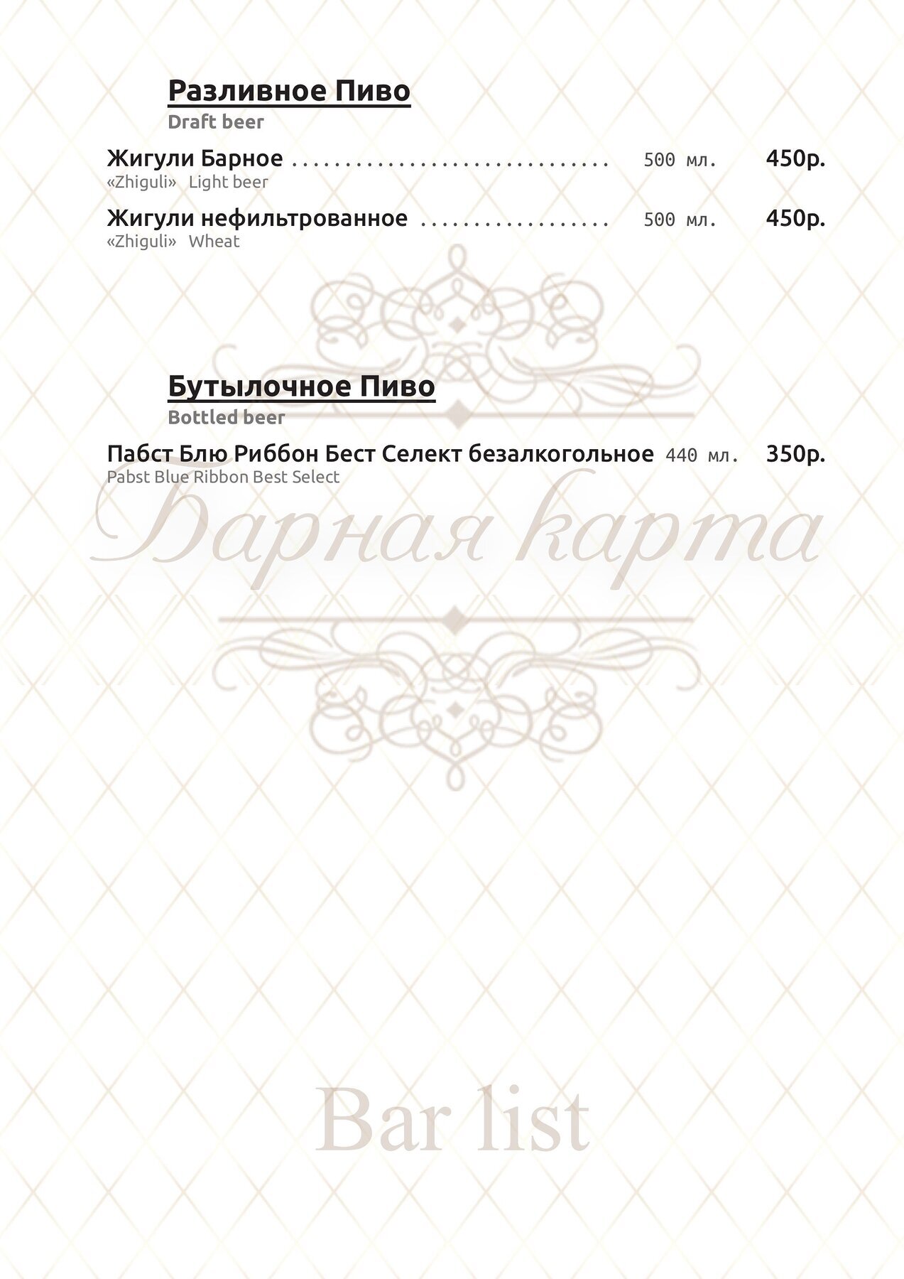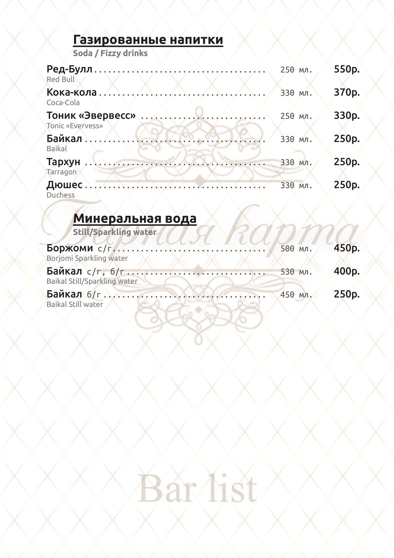 Меню и цены