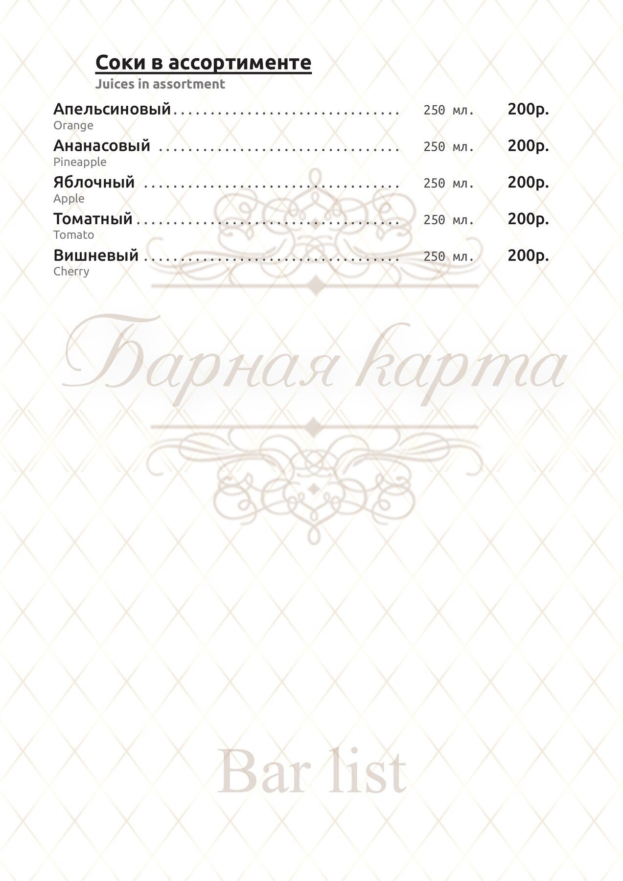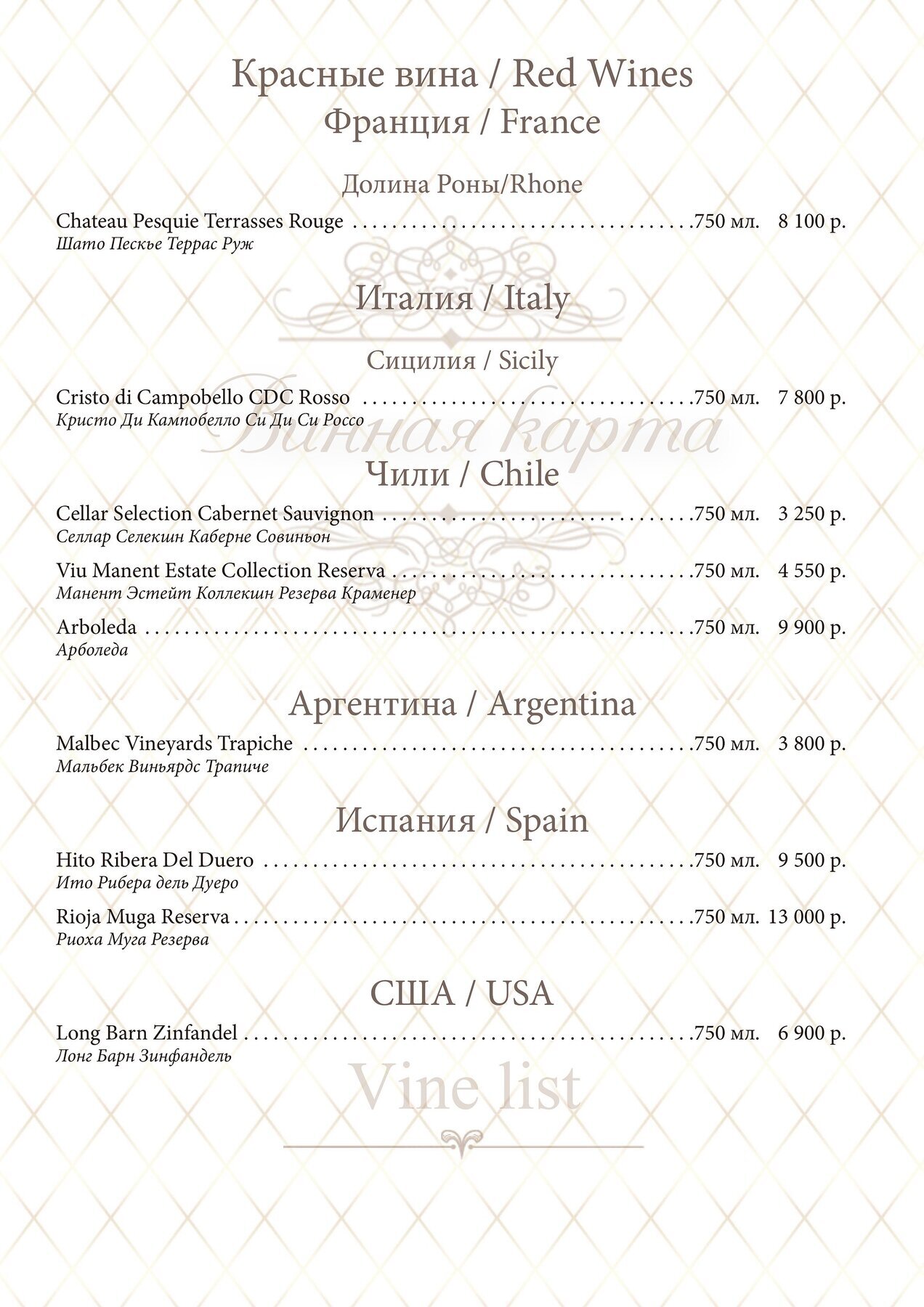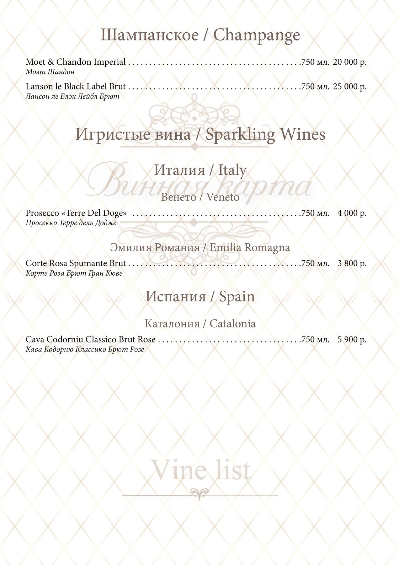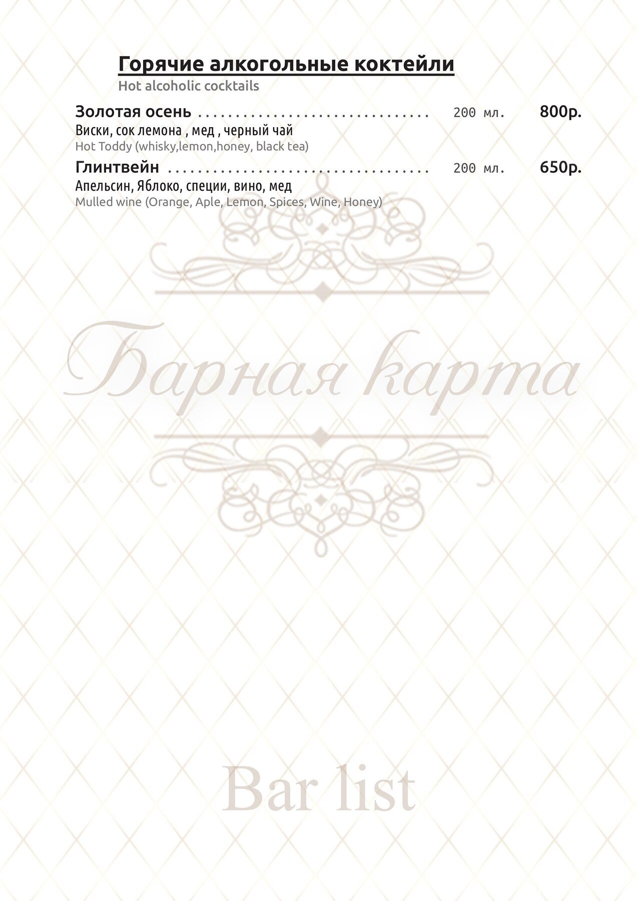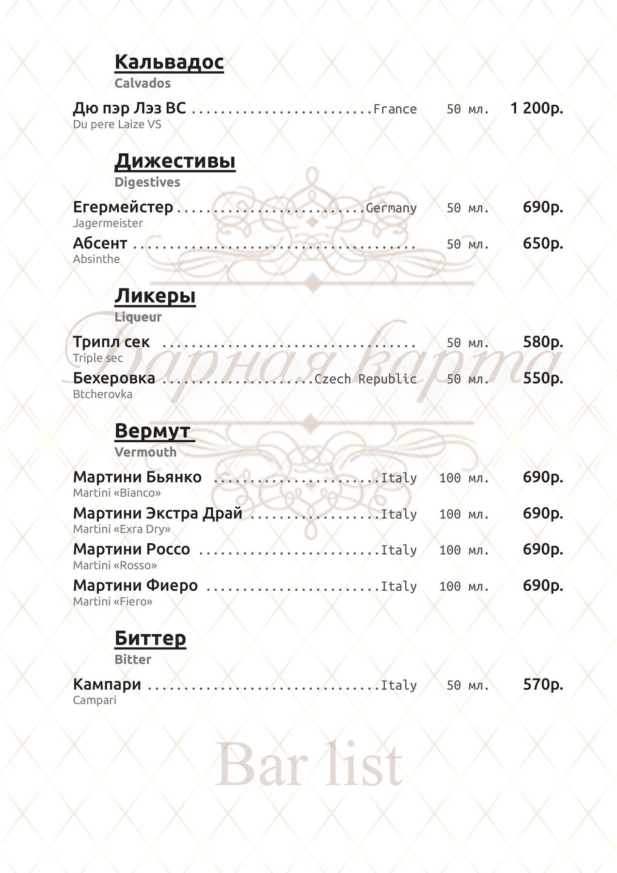 Меню и цены