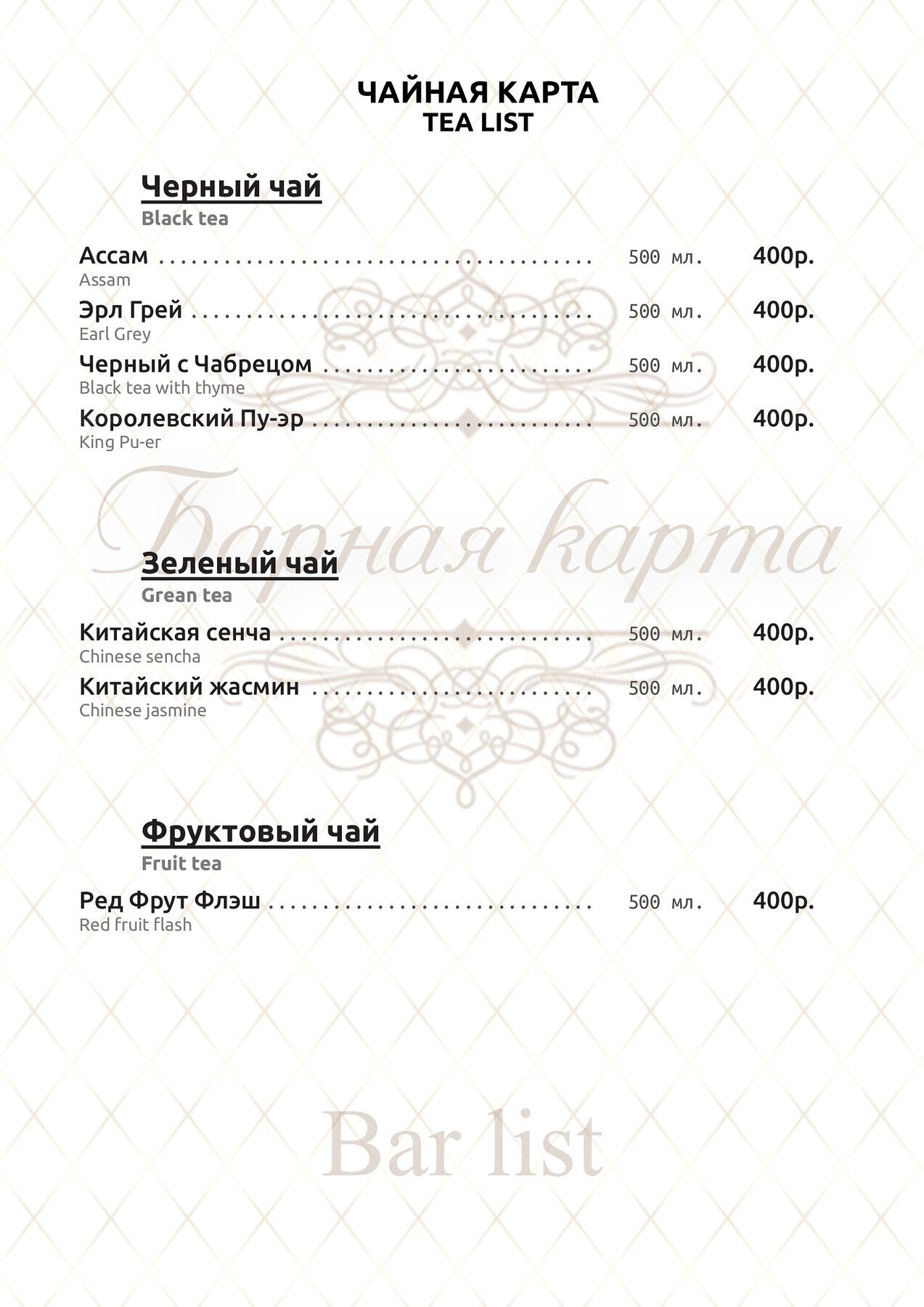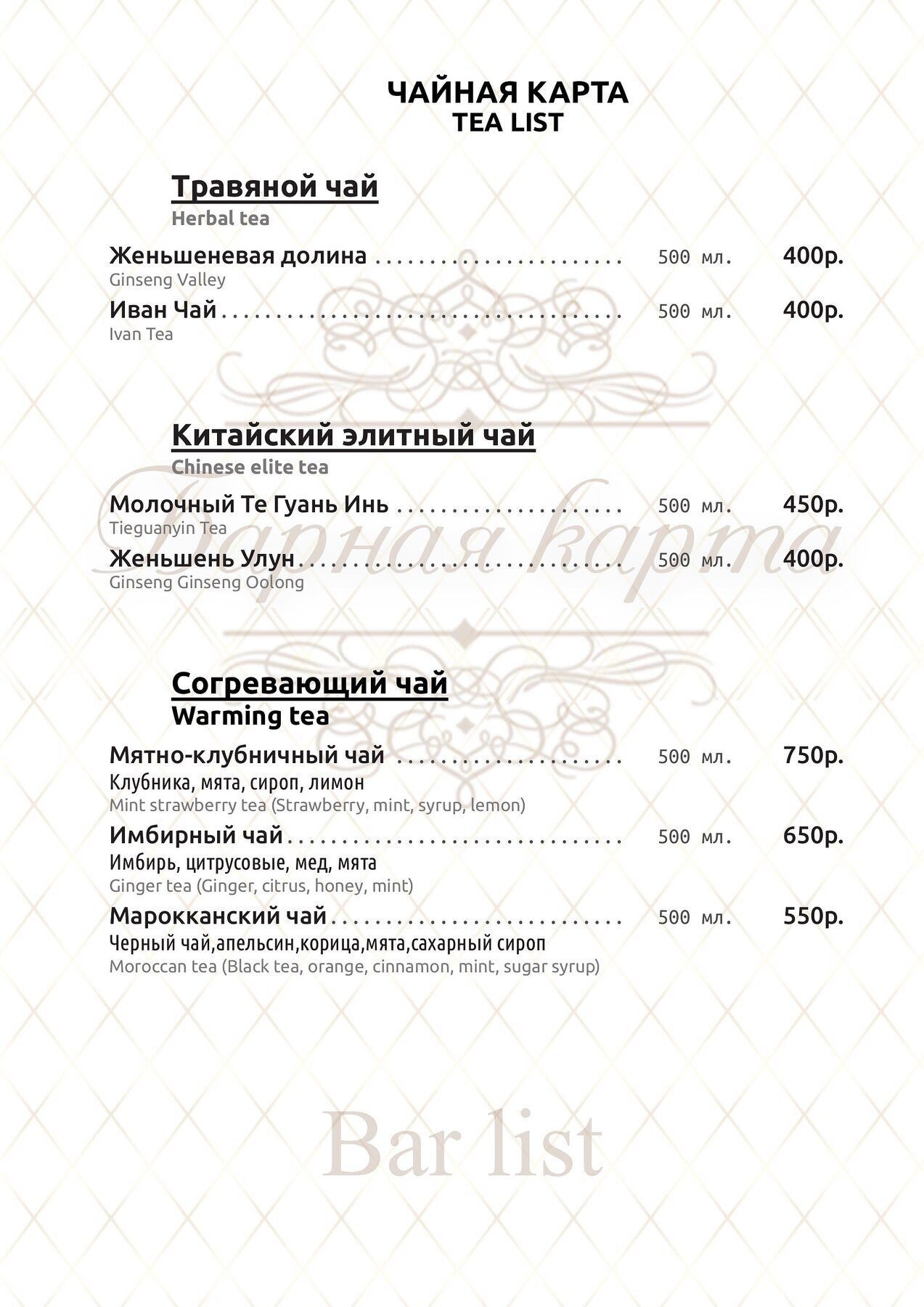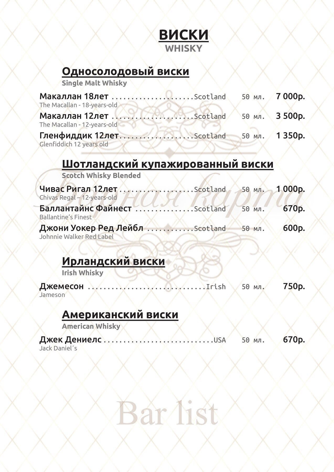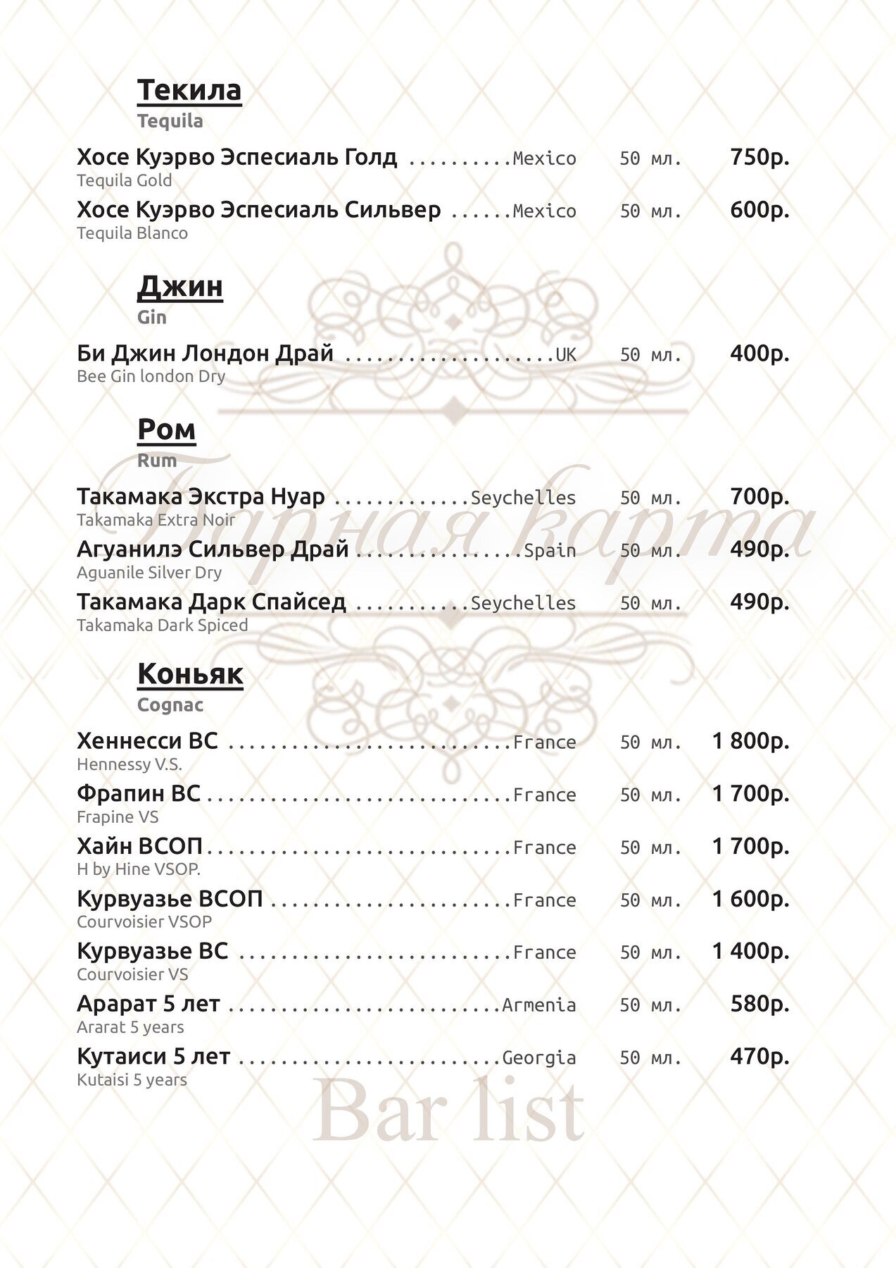 Меню и цены