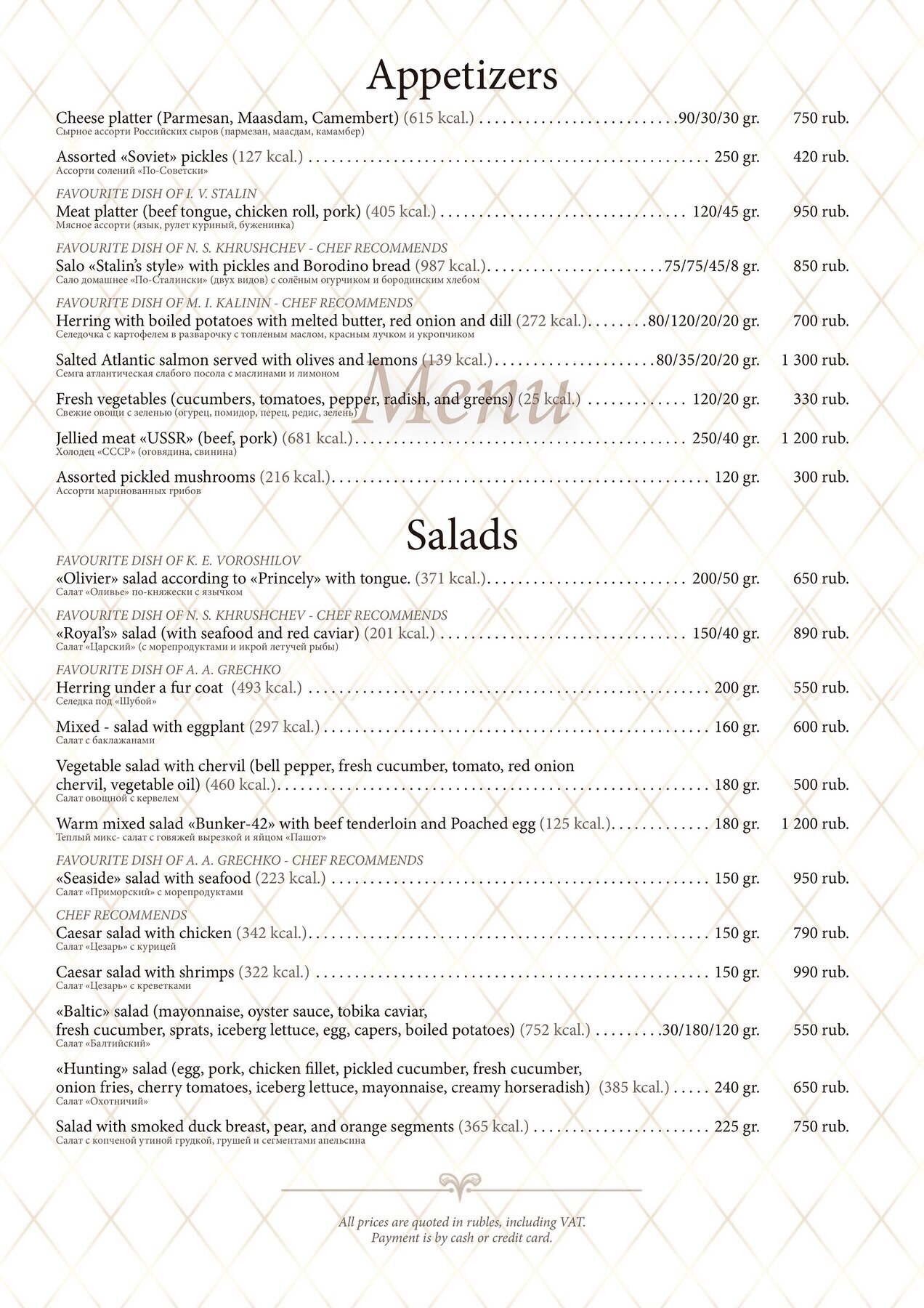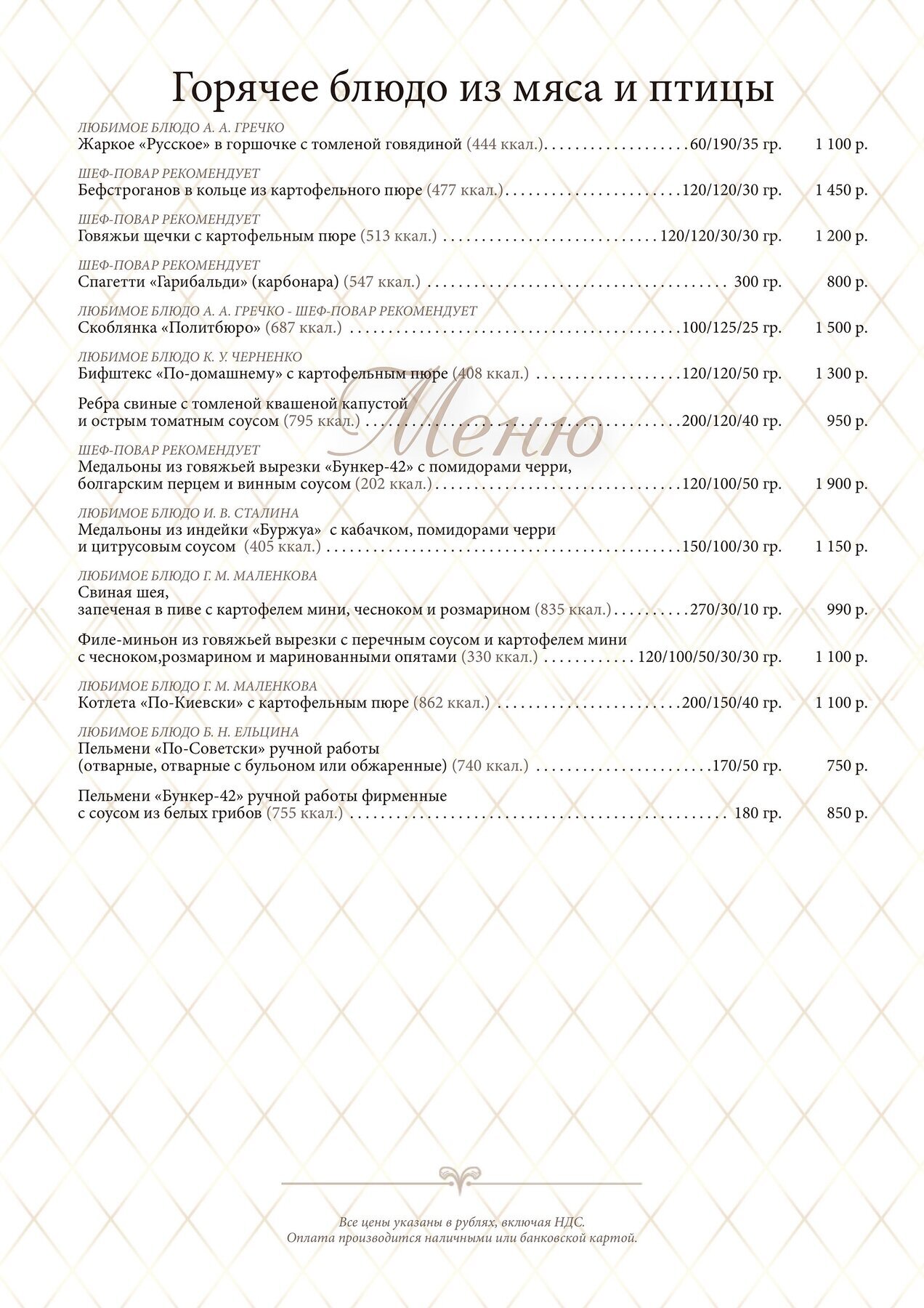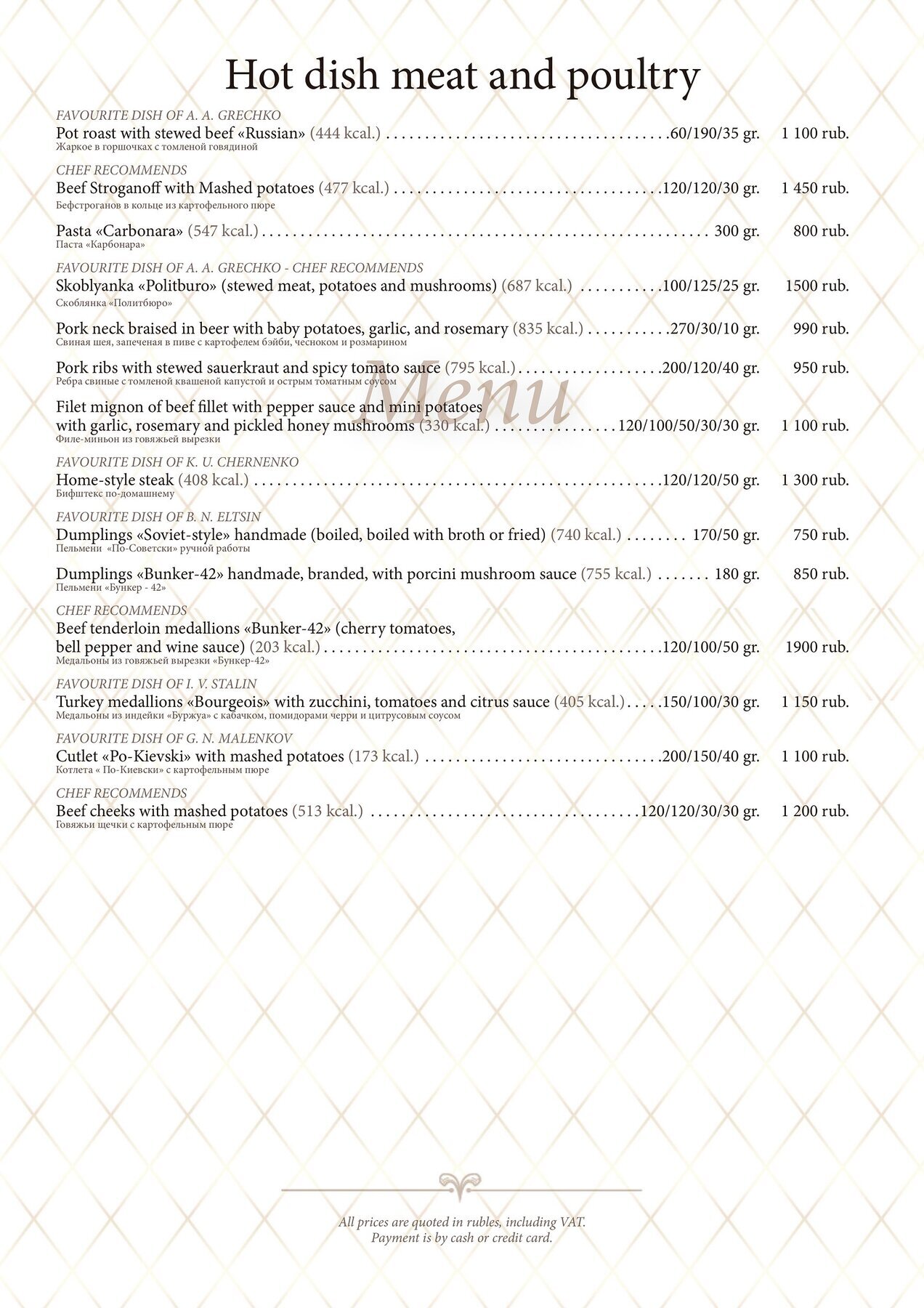 Меню и цены ресторана Бункер-42 в 5-ом Котельническом переулке фото 3