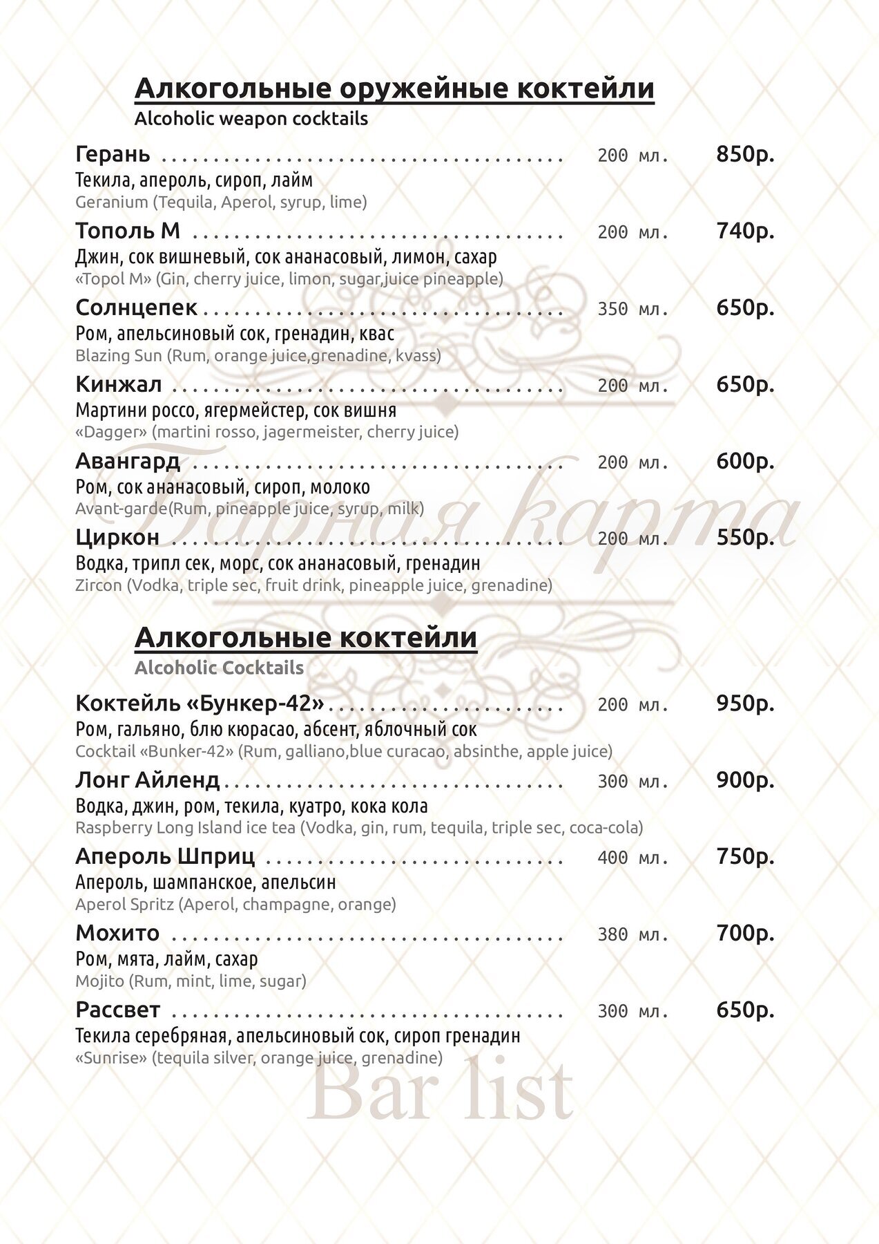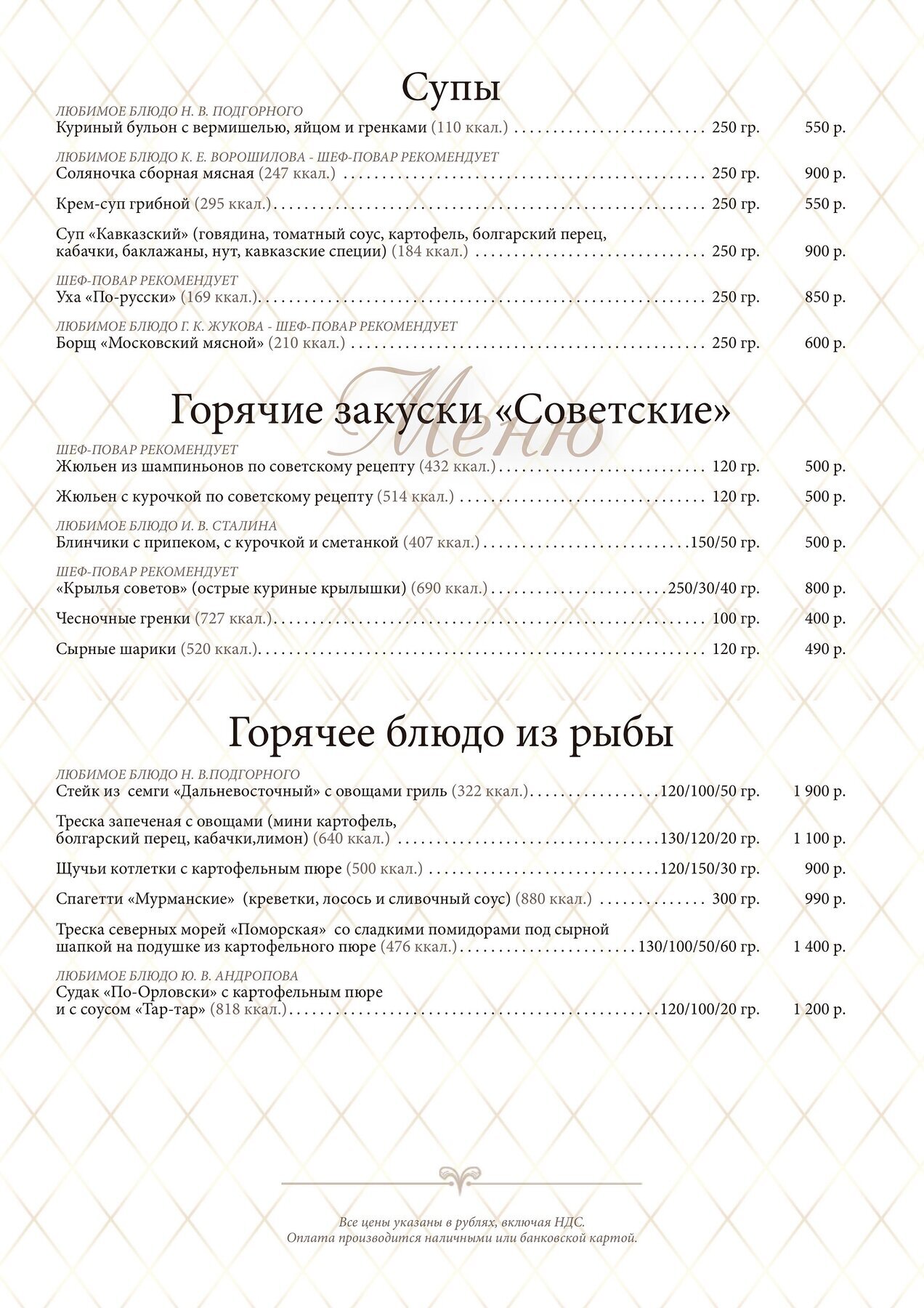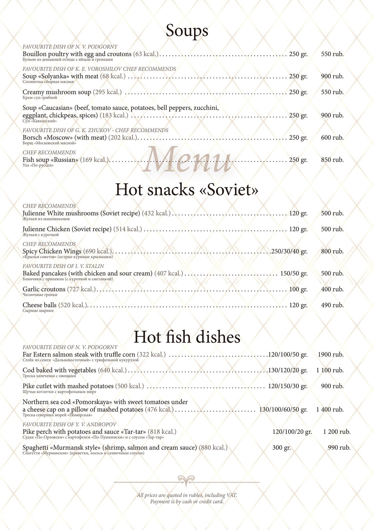 Меню и цены ресторана Бункер-42 в 5-ом Котельническом переулке фото 3