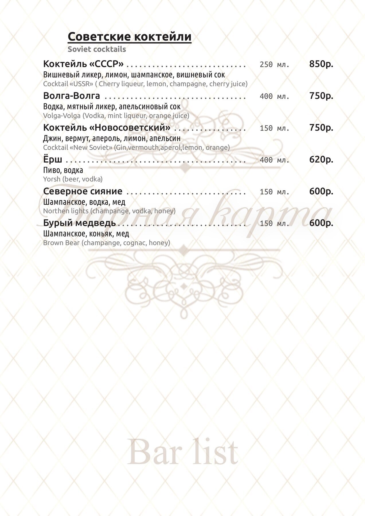 Меню и цены ресторана Бункер-42 в 5-ом Котельническом переулке фото 6