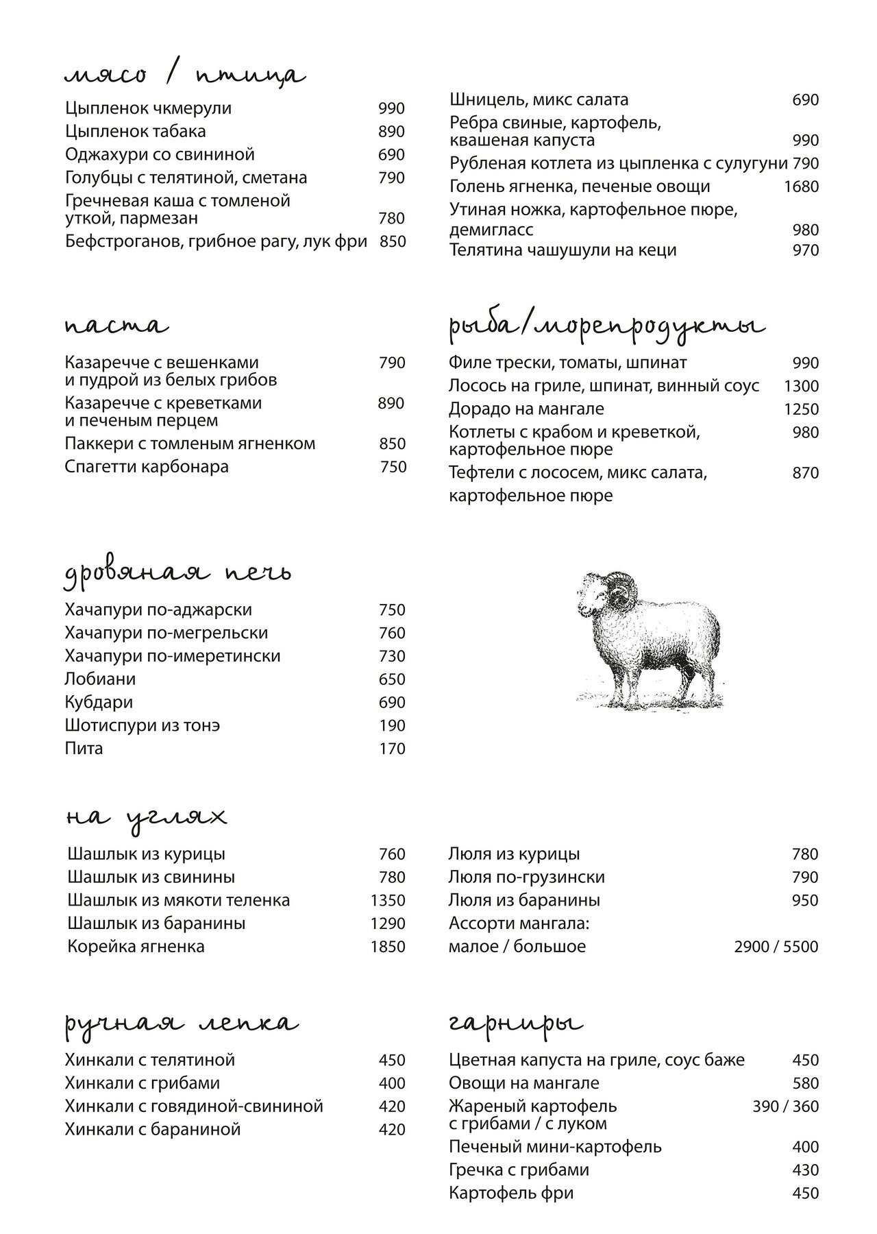 Меню и цены