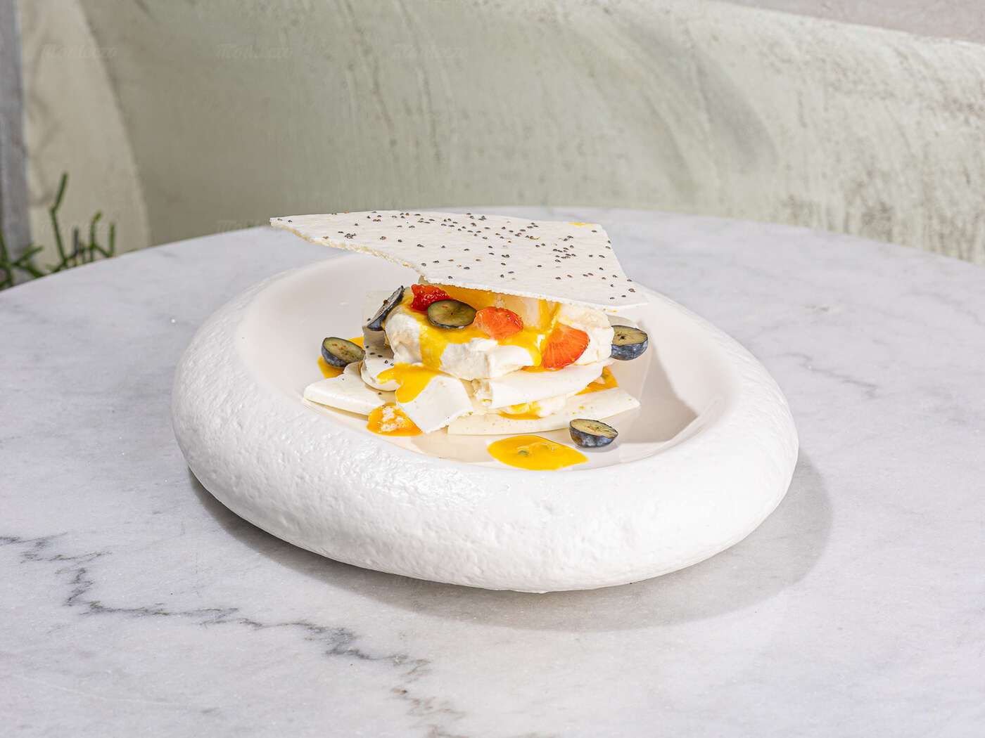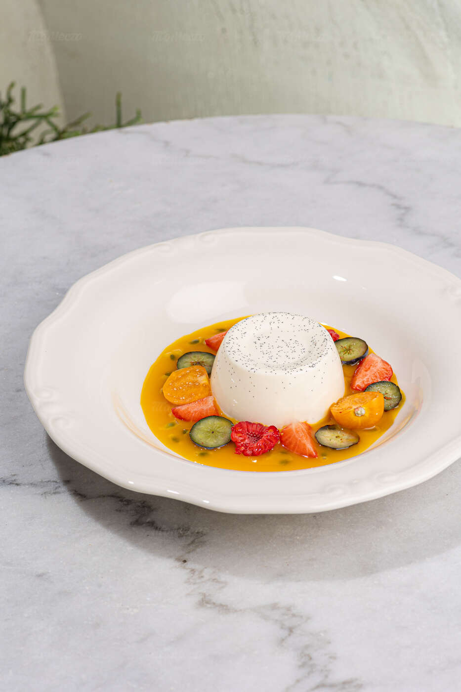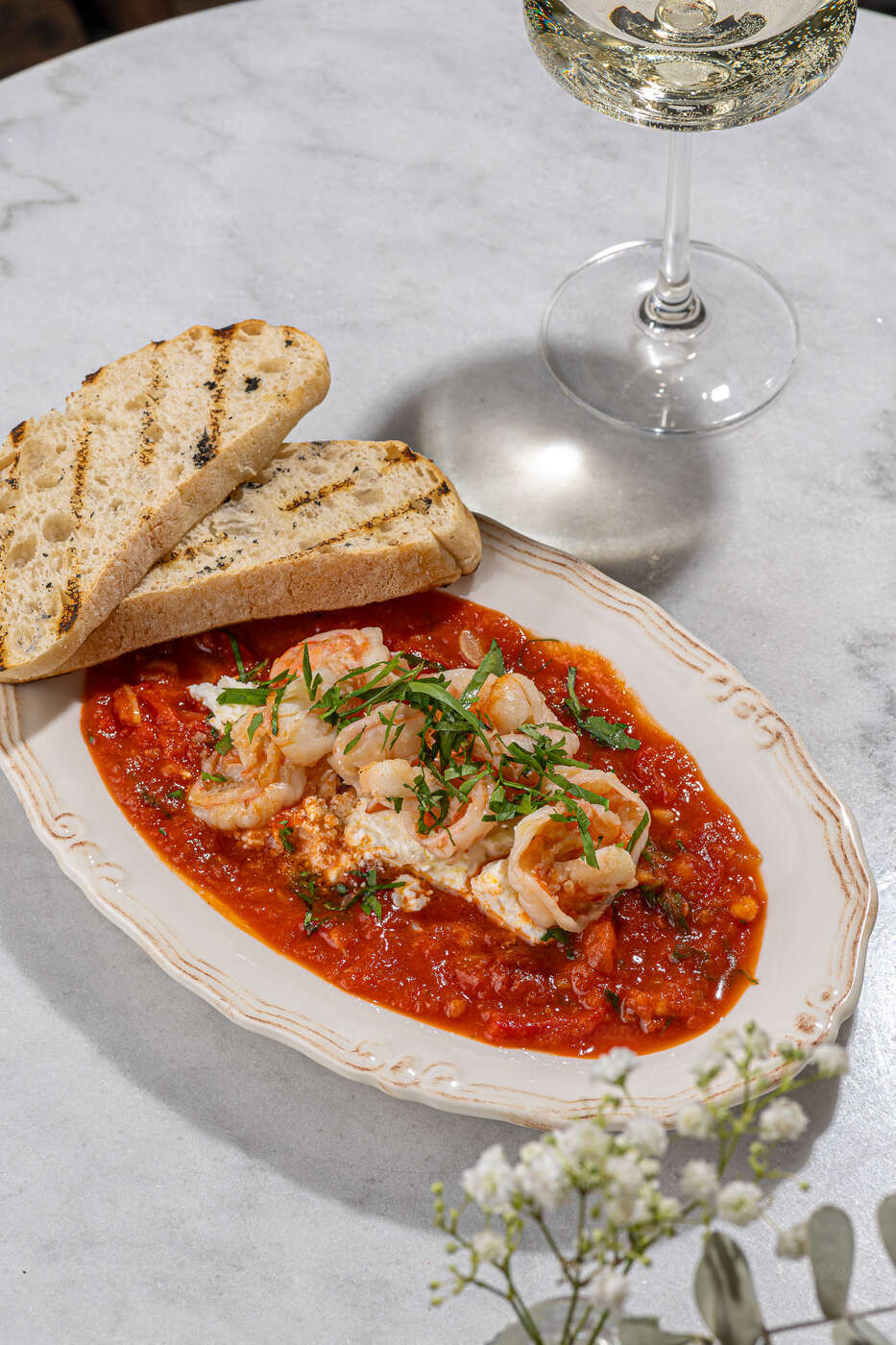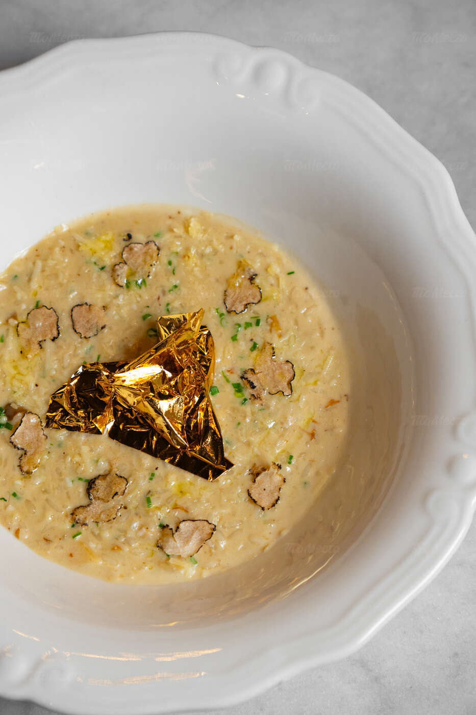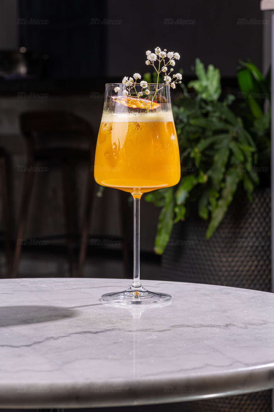 Ресторан находится в оживлённом районе столицы, где историческая атмосфера сливается воедино с современными образами, и занимает панорамное здание, окна которого выходят прямо на Грузинскую площадь. В интерьере — эстетичное сочетание металлических, жемчужных и графитовых оттенков, минималистичные формы, зеркала в рамах и живая флористика, тщательно подобранная под настроение. Главным визуальным акцентом стала тихая роскошь, воплощённая в резном декоре, люстрах-канделябрах и других деталях.
