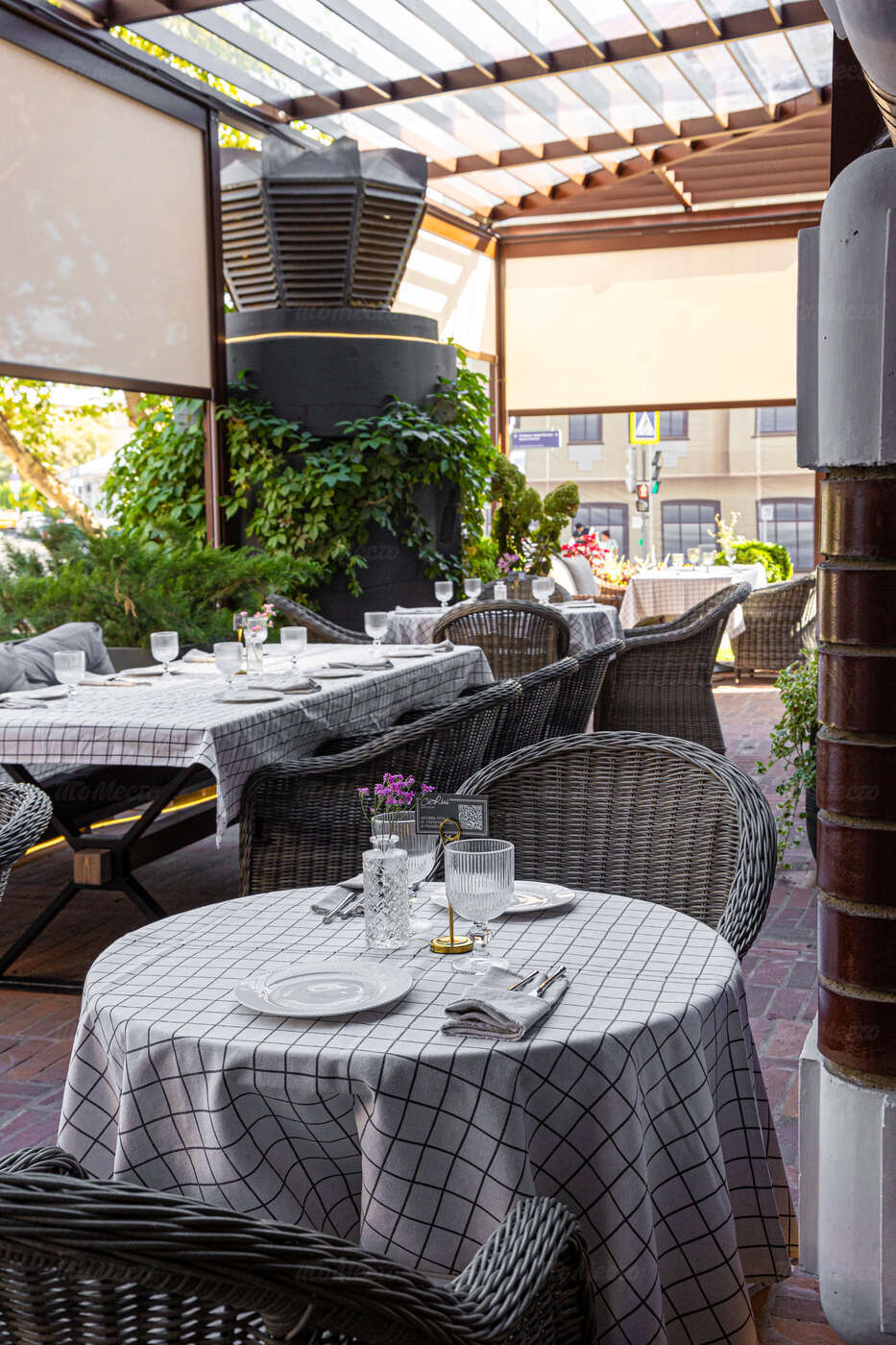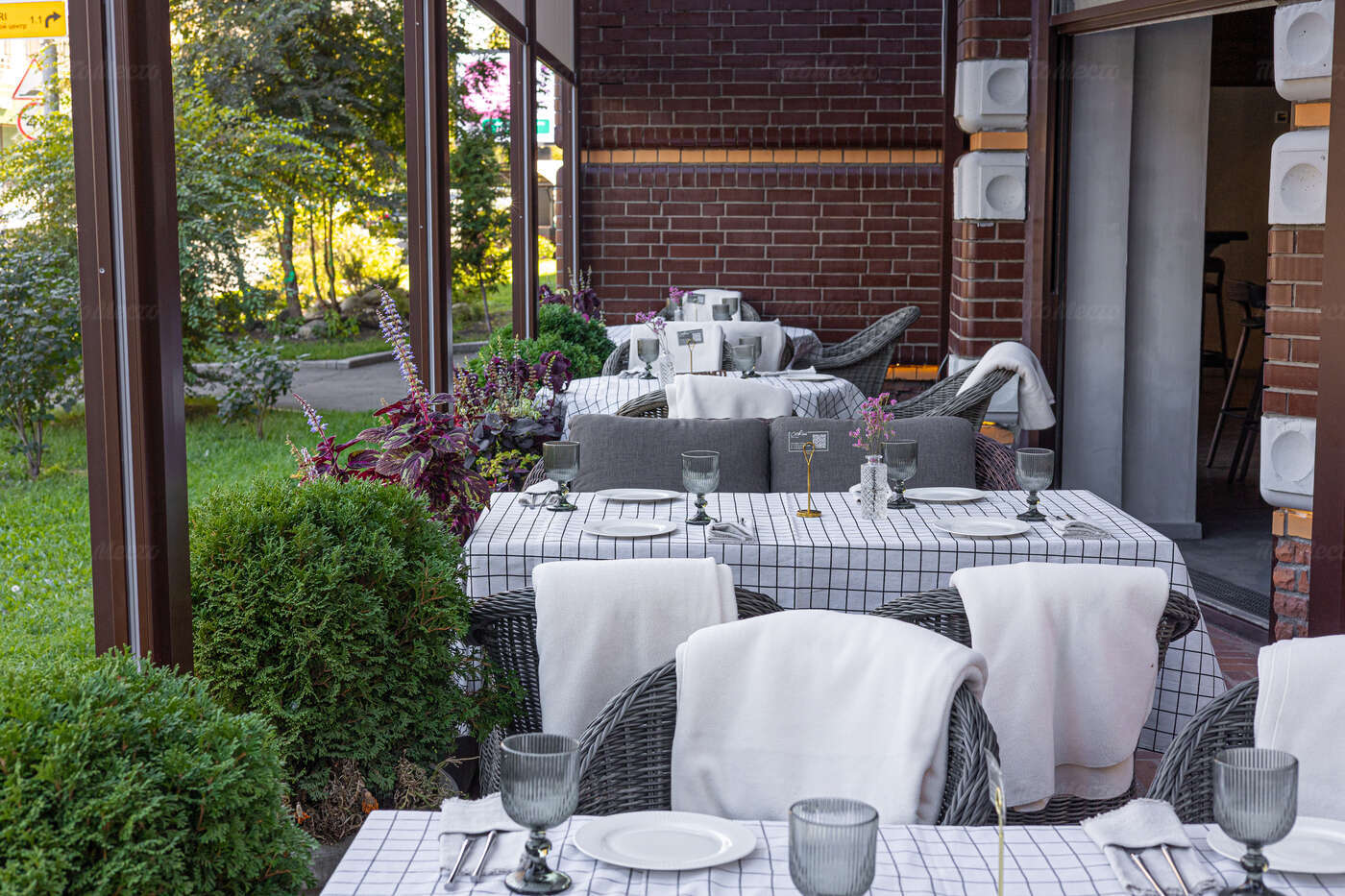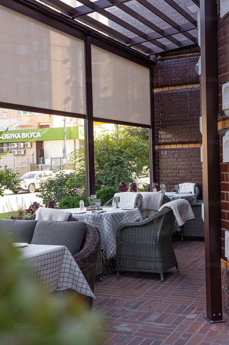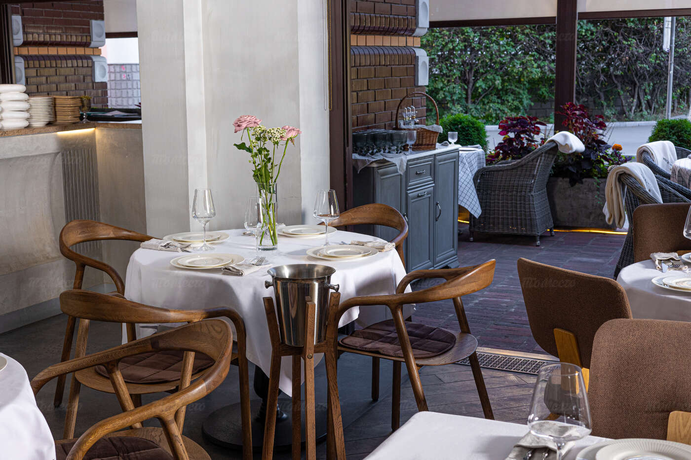 В тёплое время года окна раздвигаются, и зал становится полностью открытым, соединяясь с уютной террасой, где прозрачная крыша из стекла завершает образ идеального открытого пространства для отдыха. Здесь регулярно проходят концерты живой музыки, мастер-классы, фешн-бранчи и спортивные трансляции. Для детей предусмотрено отдельное меню, стульчики и наборы для рисования.