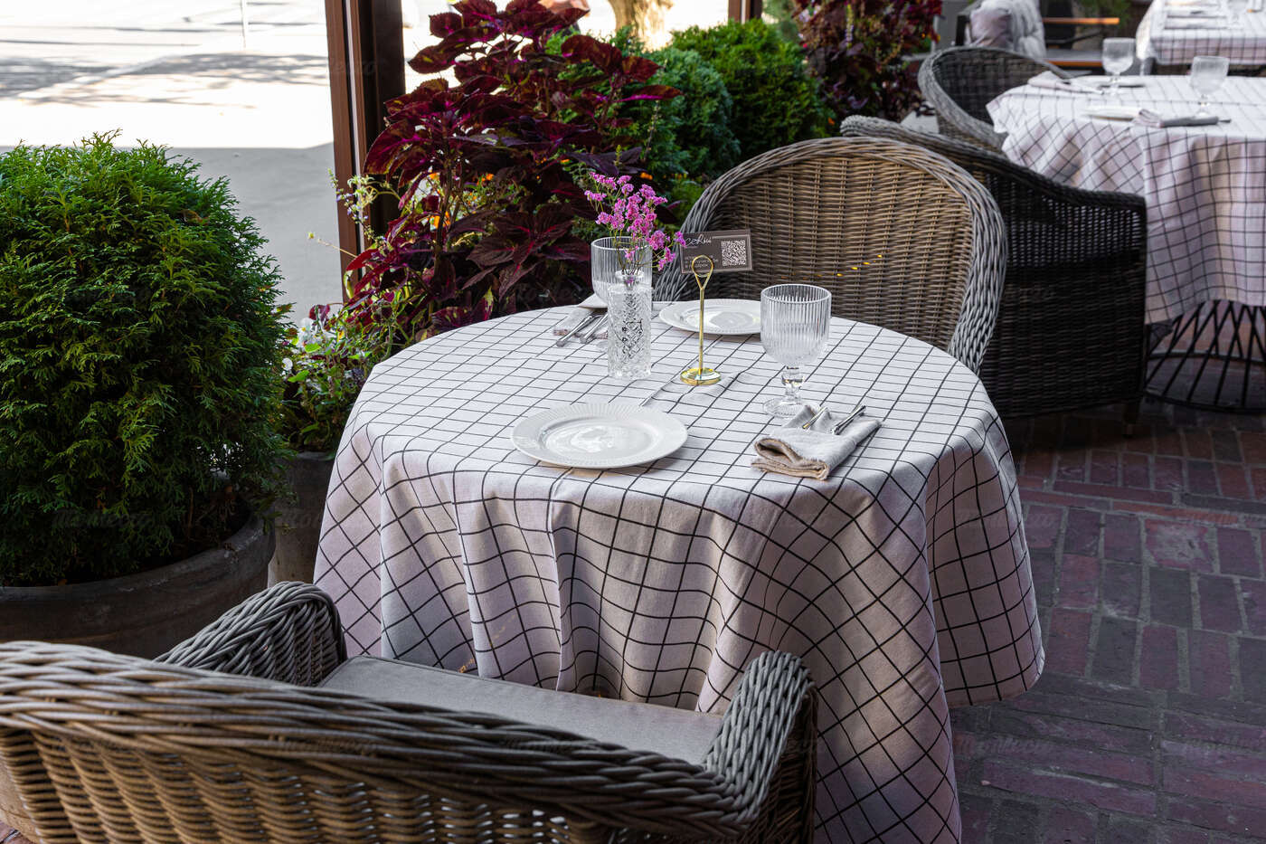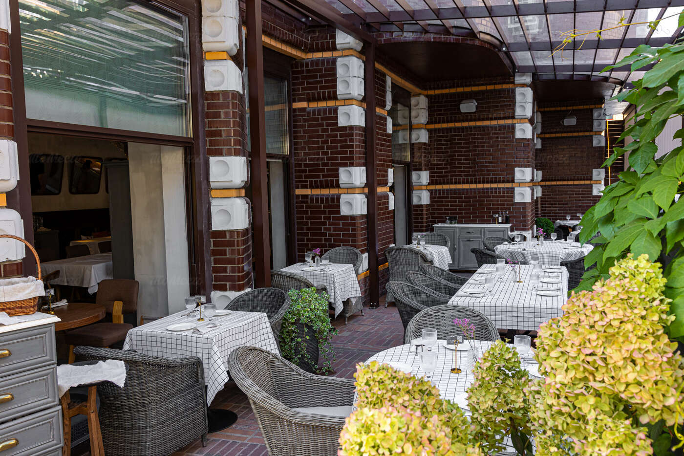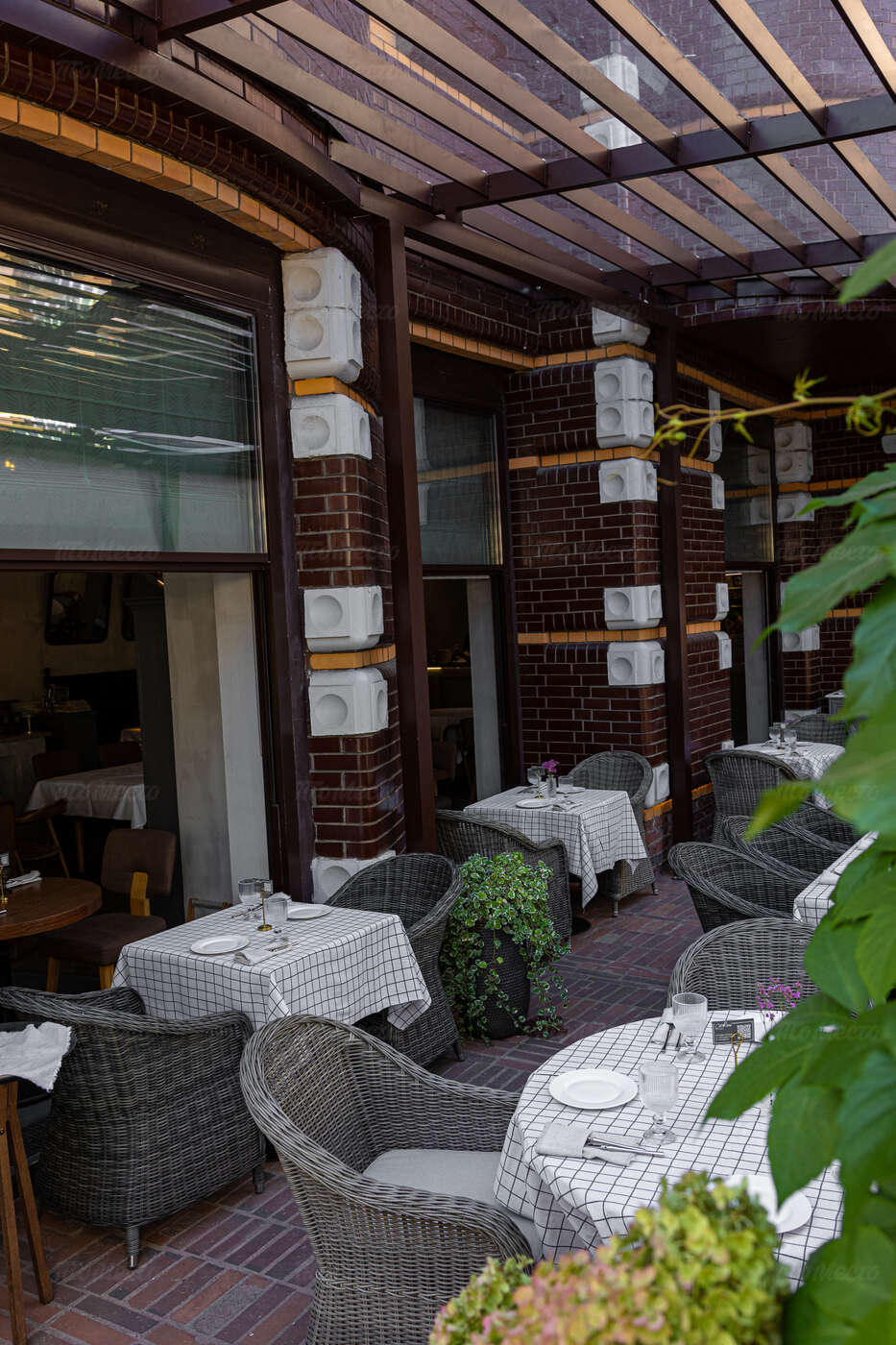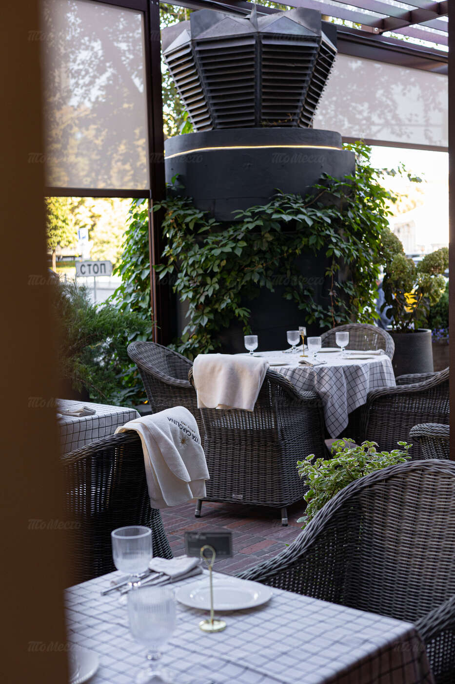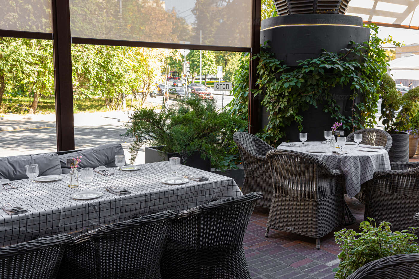В тёплое время года окна раздвигаются, и зал становится полностью открытым, соединяясь с уютной террасой, где прозрачная крыша из стекла завершает образ идеального открытого пространства для отдыха. Здесь регулярно проходят концерты живой музыки, мастер-классы, фешн-бранчи и спортивные трансляции. Для детей предусмотрено отдельное меню, стульчики и наборы для рисования.