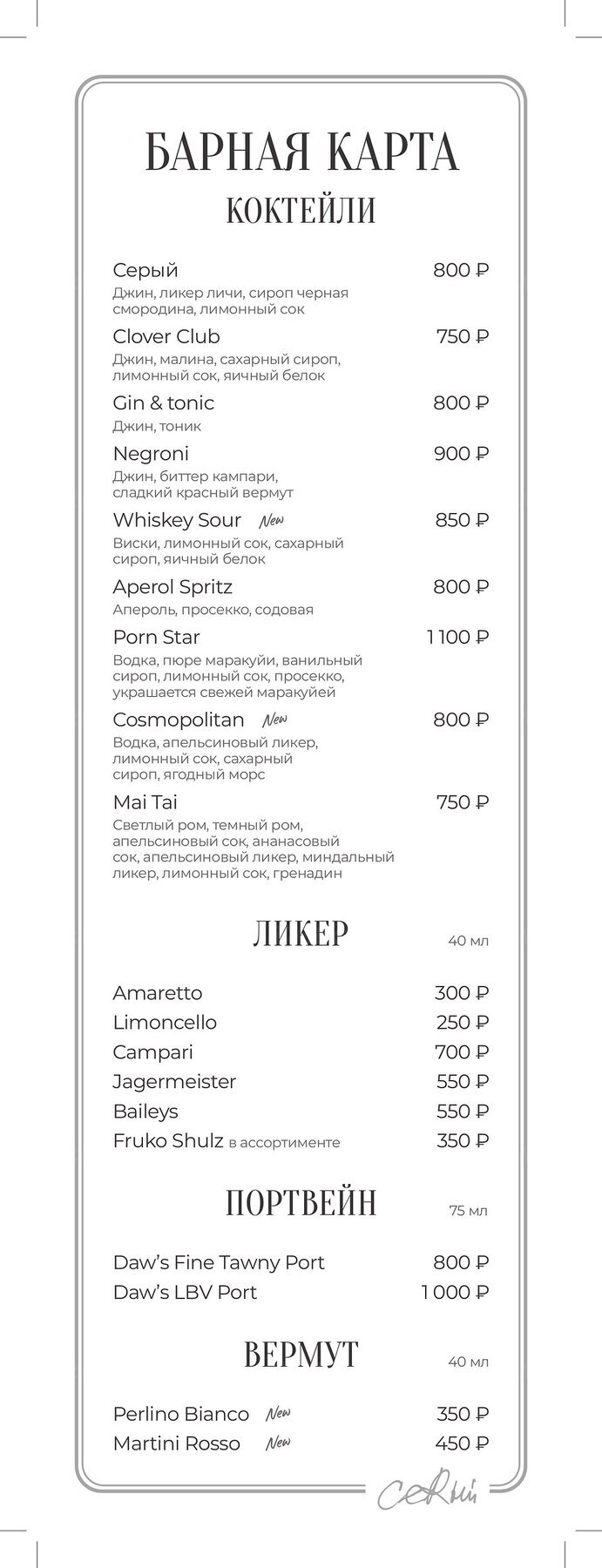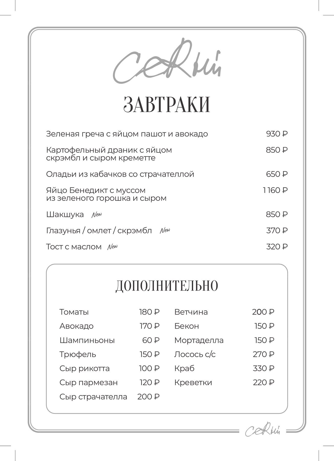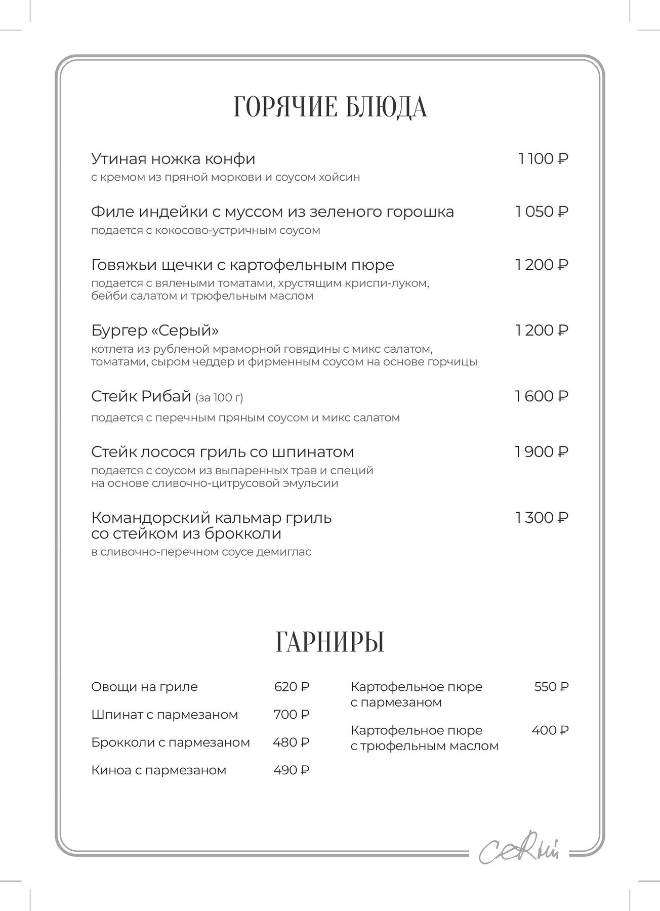 Меню и цены ресторана Серый на Большой Грузинской фото 1