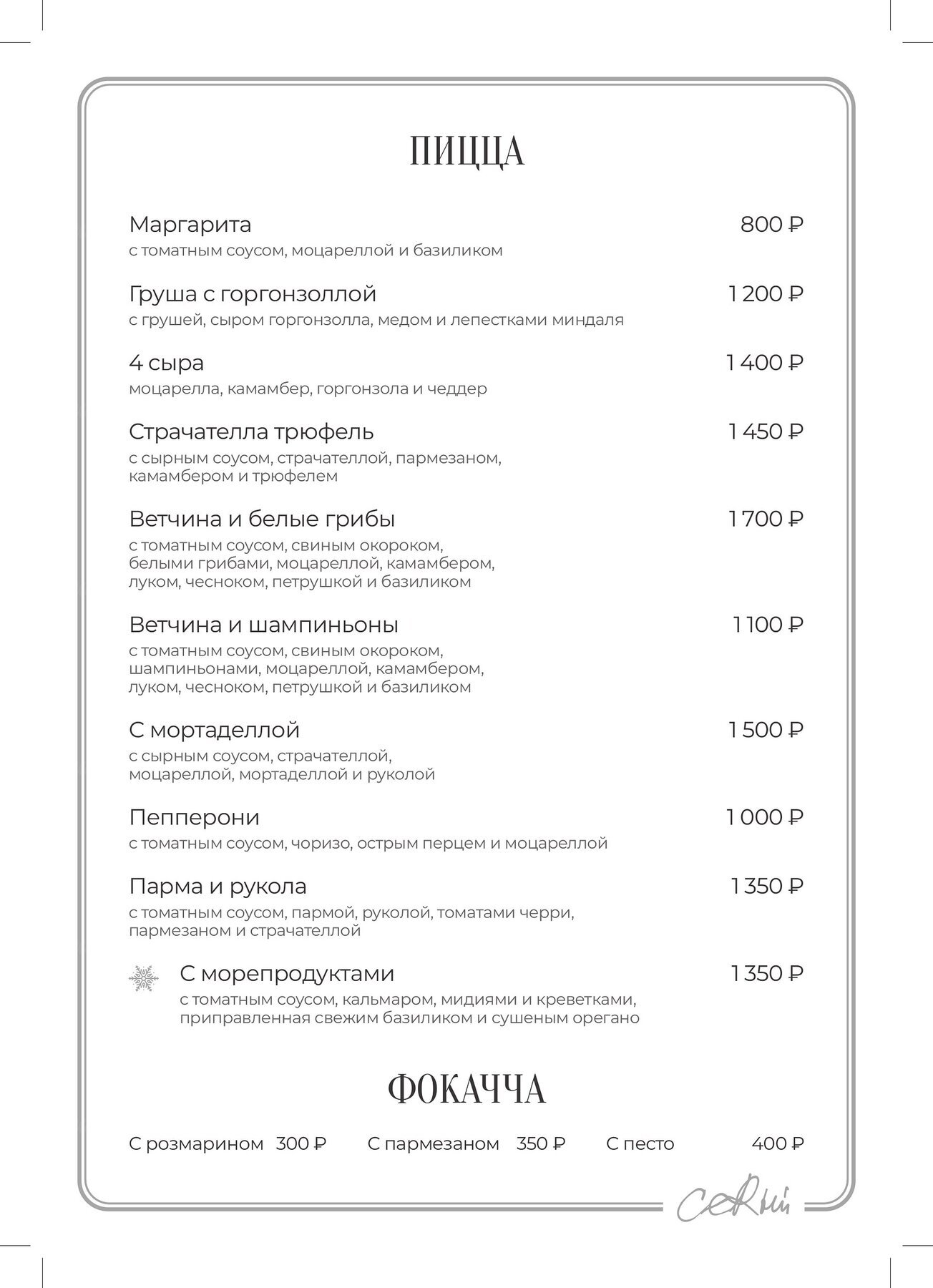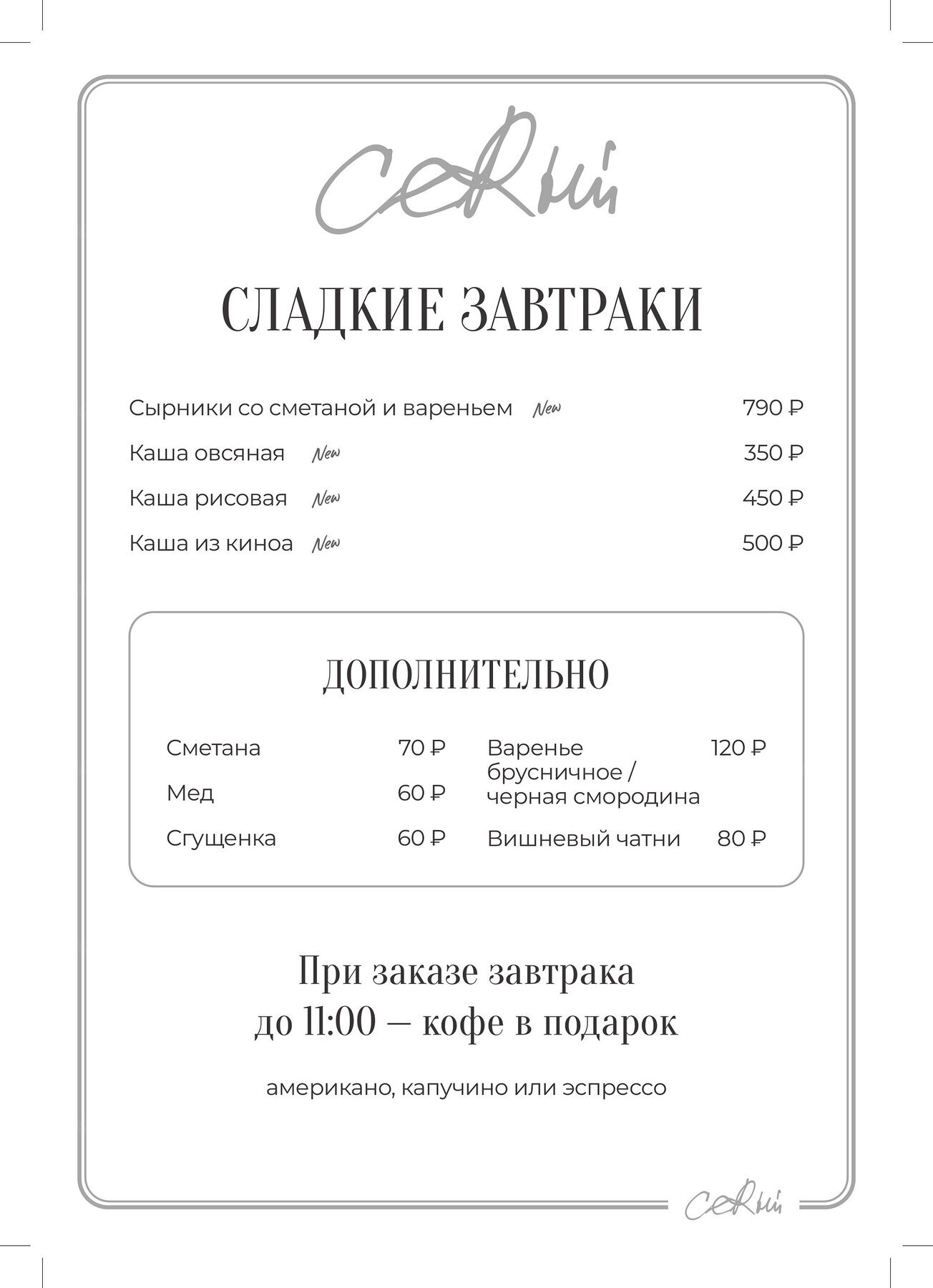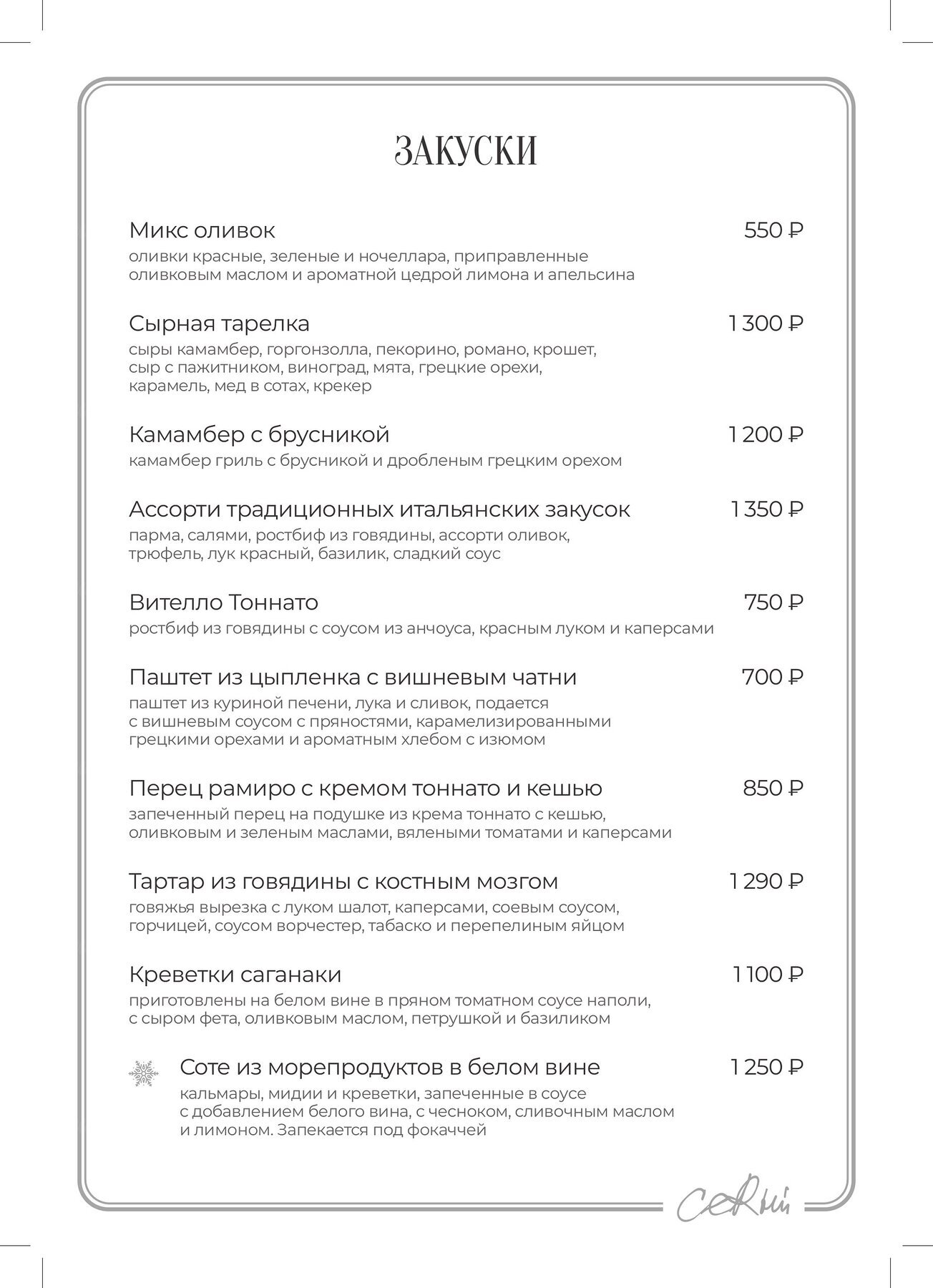 Меню и цены ресторана Серый на Большой Грузинской фото 1