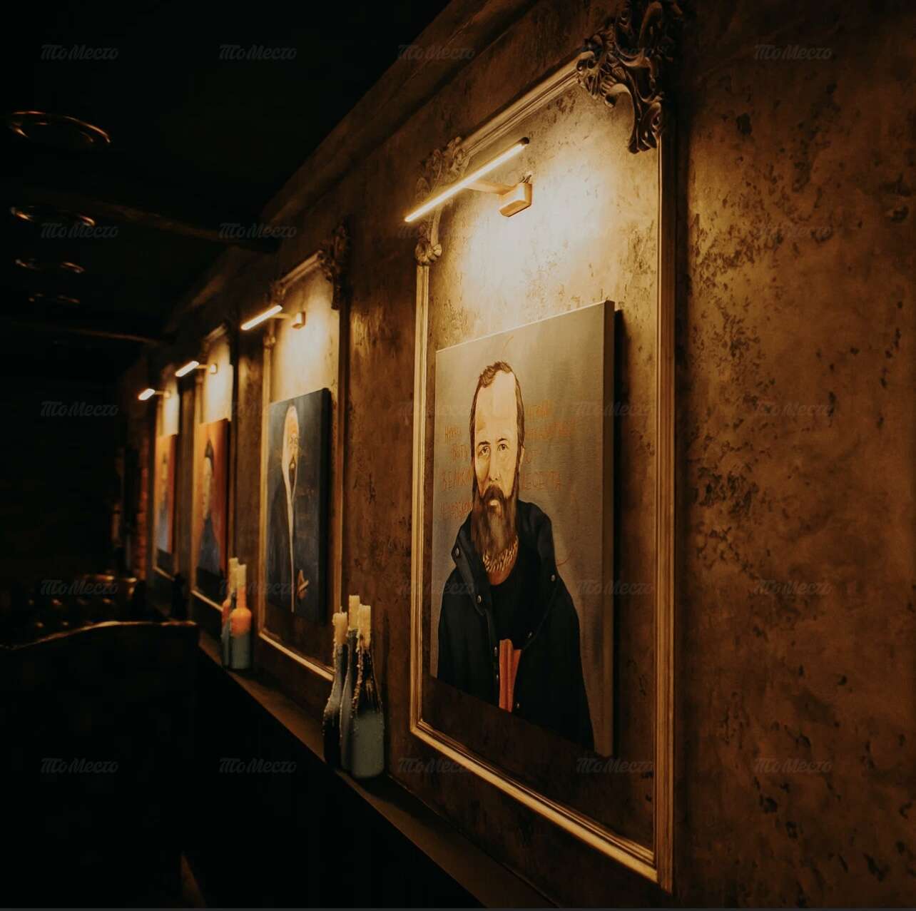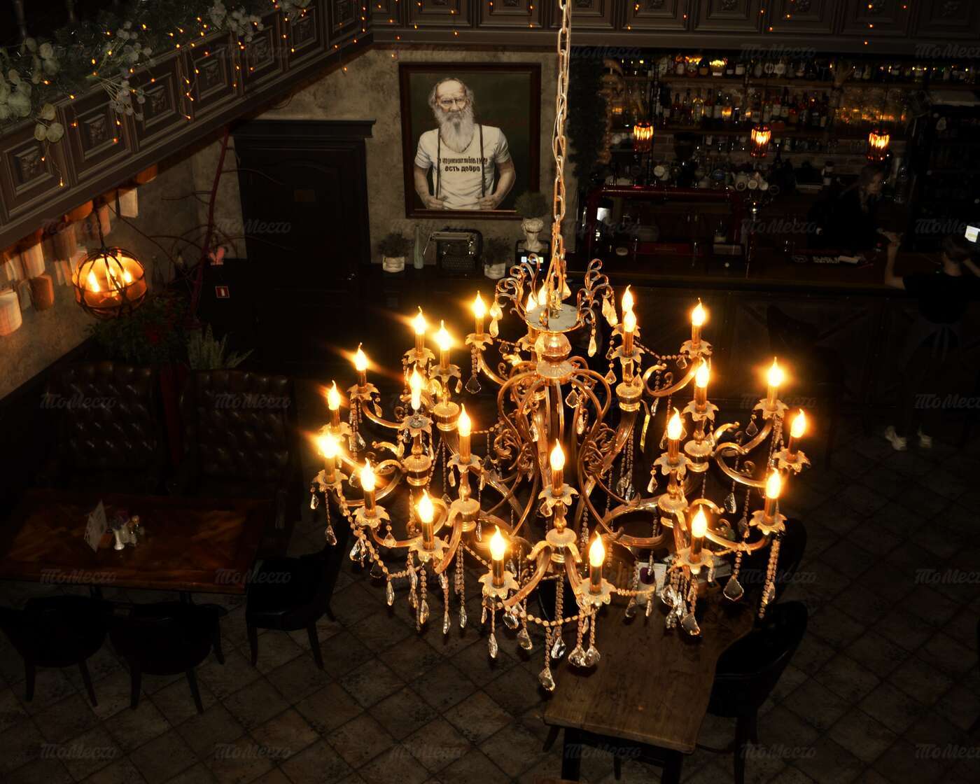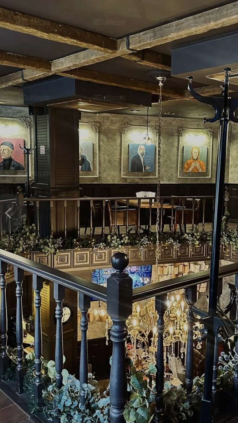 Двухэтажное здание, в котором расположен ресторан, украшено изображениями великого русского писателя. Внутри — интерьер в старинном стиле, с дубовыми резными перилами, массивными стульями и креслами, обитыми натуральной кожей. На стенах — портретная галерея, под потолком — сияющая люстра. На втором ярусе разместились камерные зоны, на первом — зал с коммунальным столом и барная стойка.