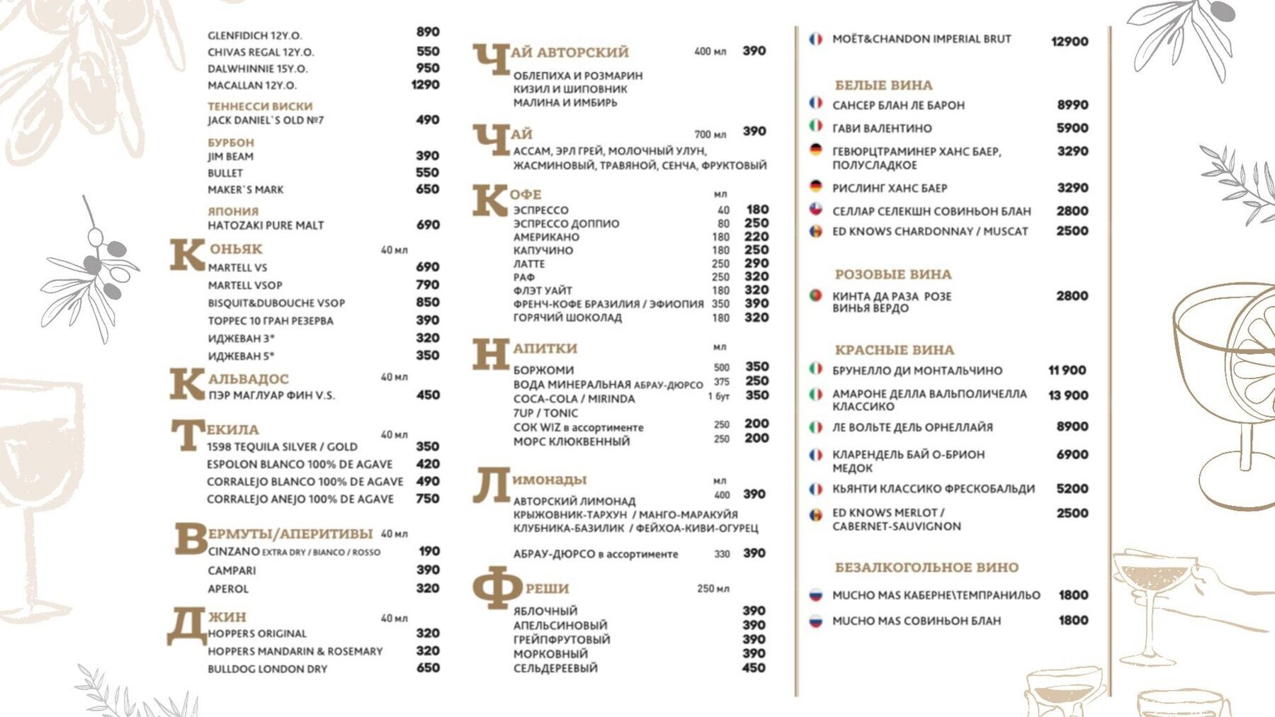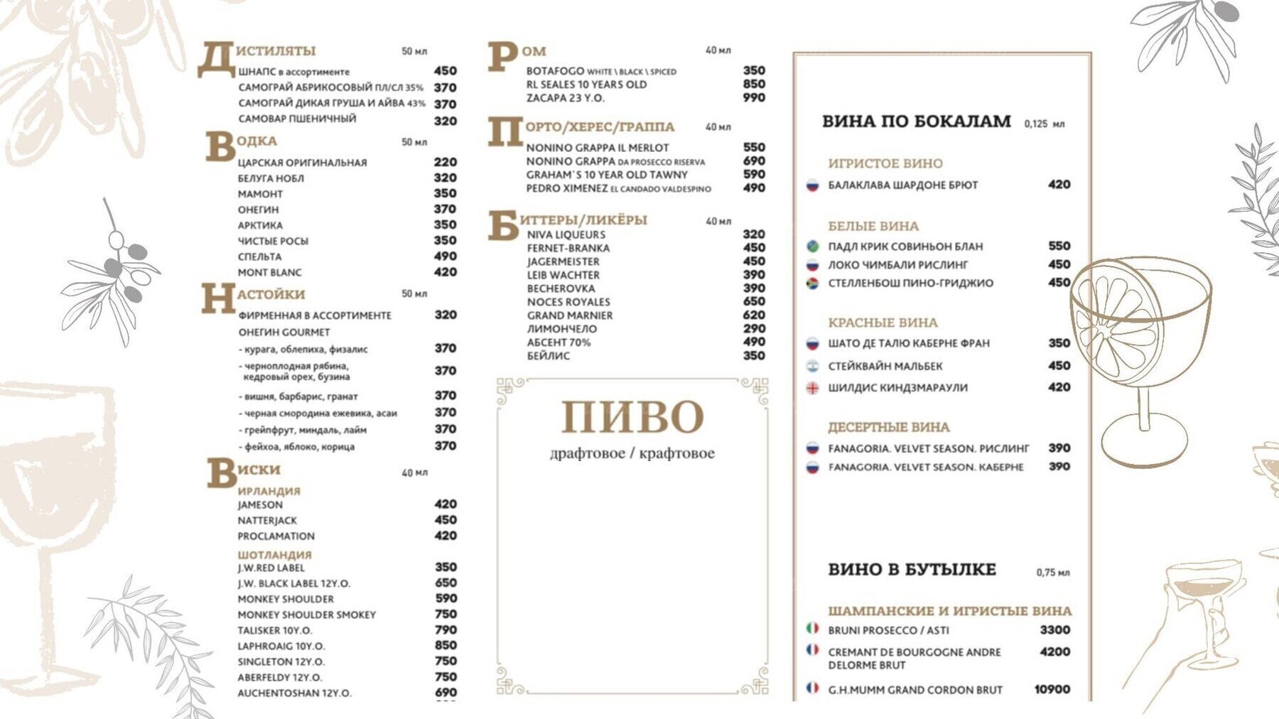 Меню и цены