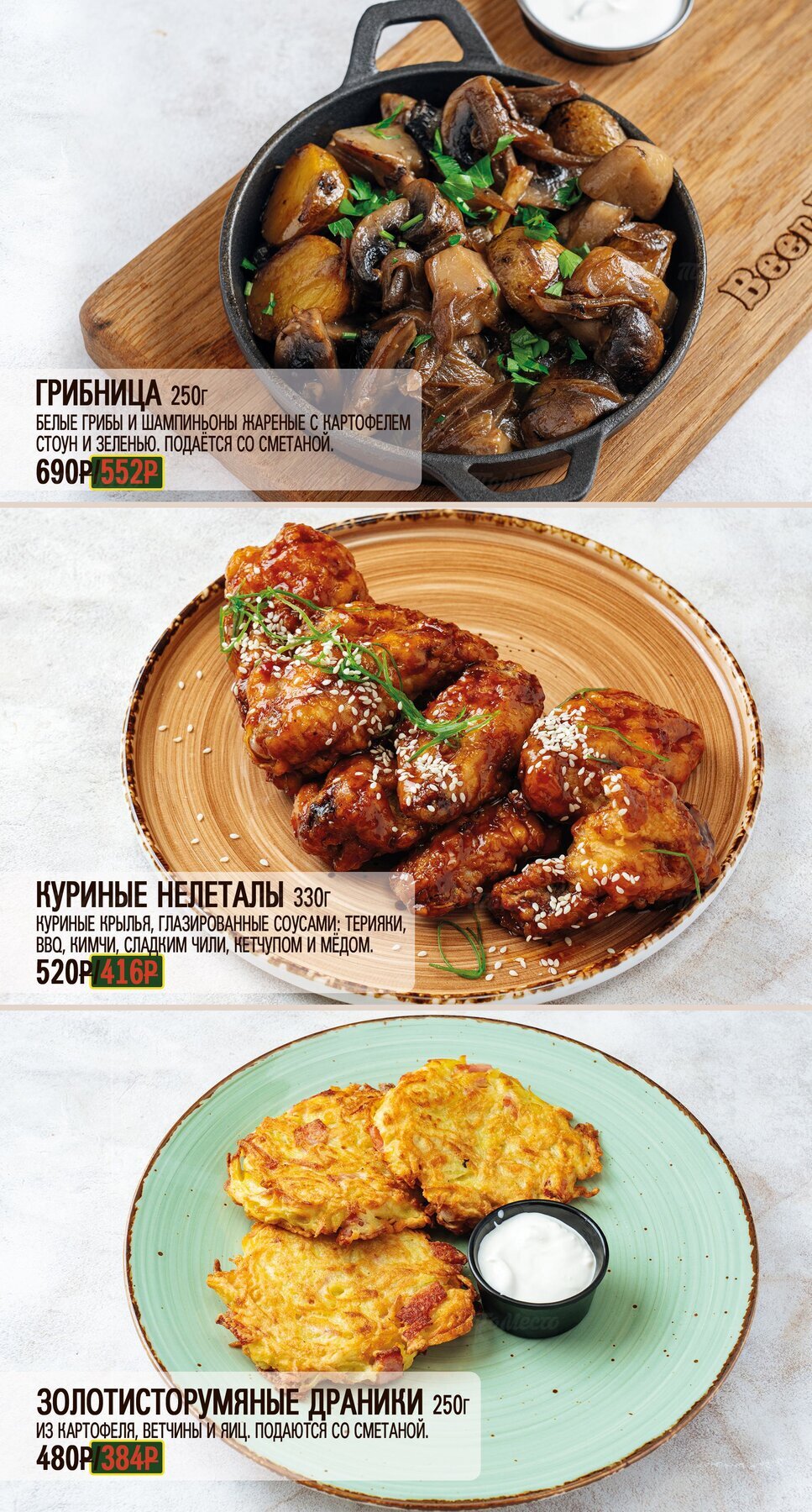 Для всех гостей работает беспроводной интернет. Меню переведено на английский. Спортивные трансляции важных матчей и соревнований порадуют всех неравнодушных к футболу, хоккею и единоборствам. К услугам автолюбителей — удобная и бесплатная парковка. По будням действует обеденная скидка на всё основное меню. Каждый день готовят завтраки.