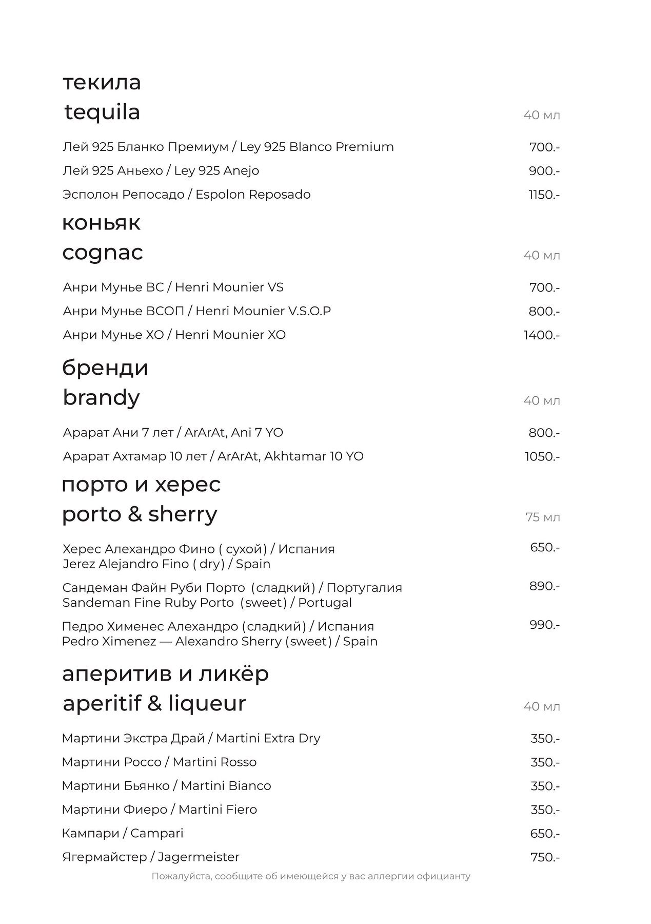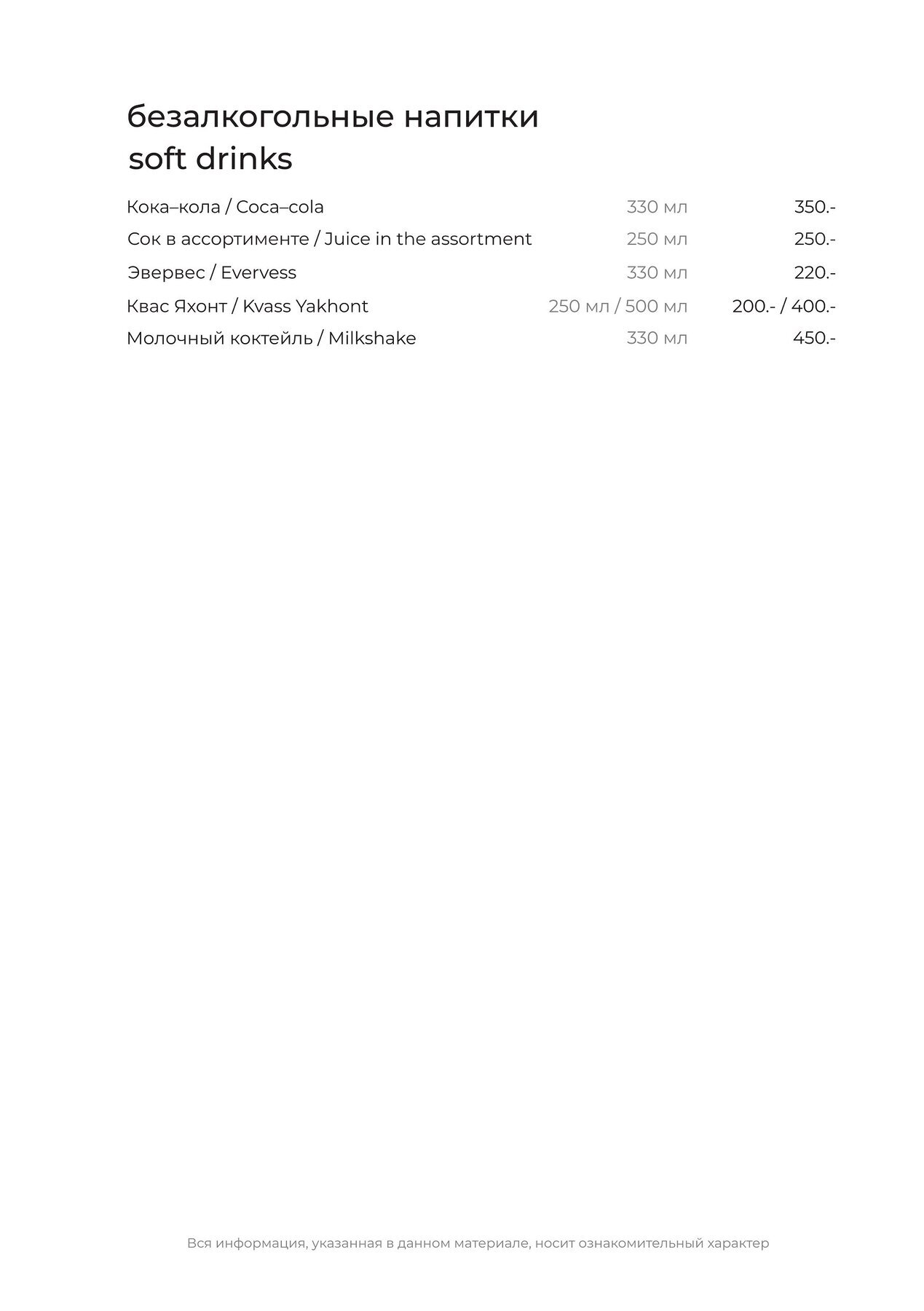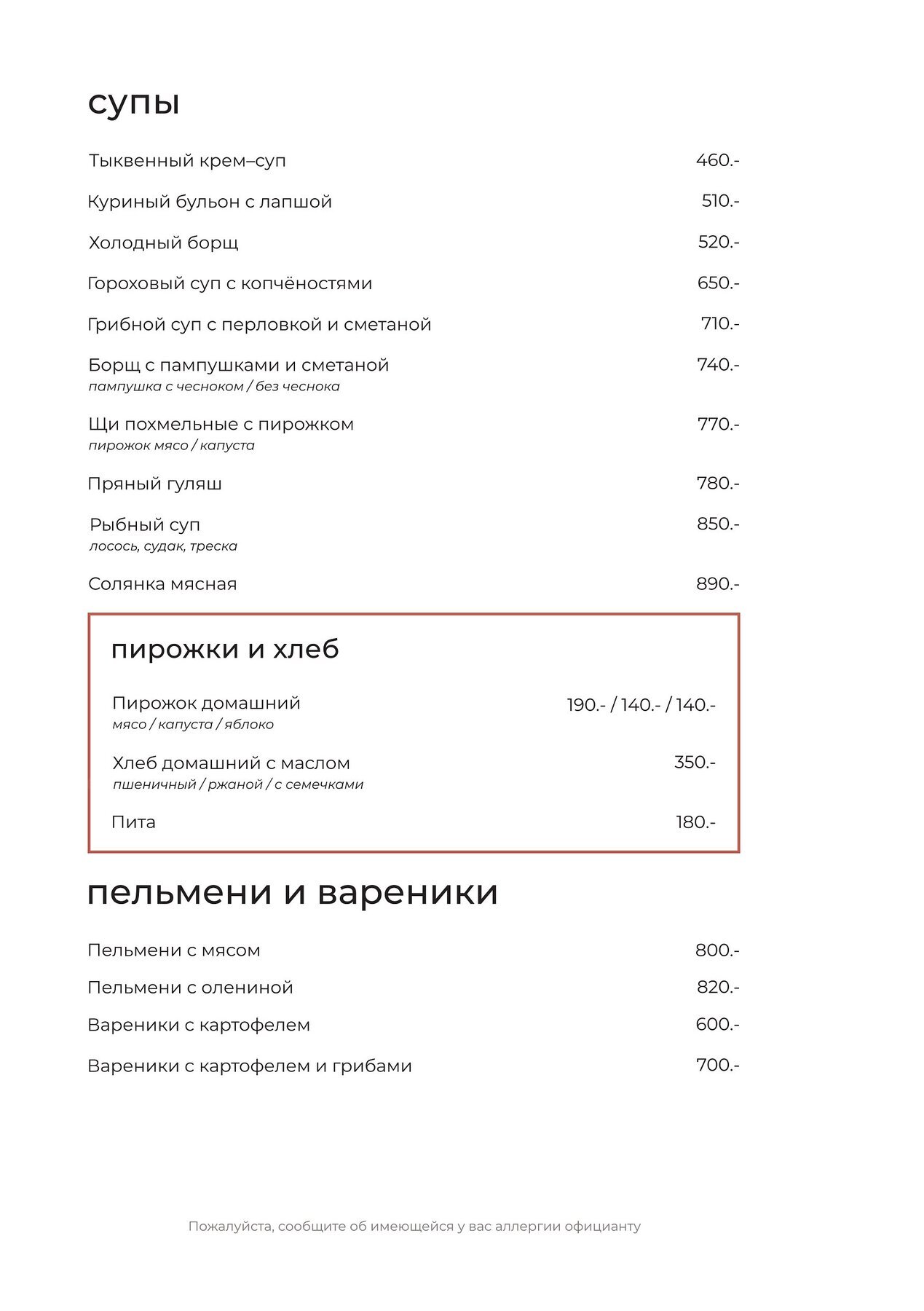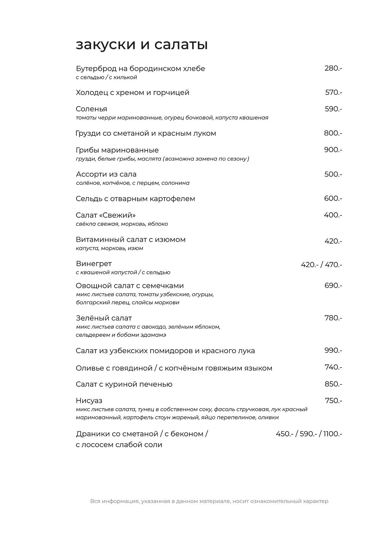 Меню и цены