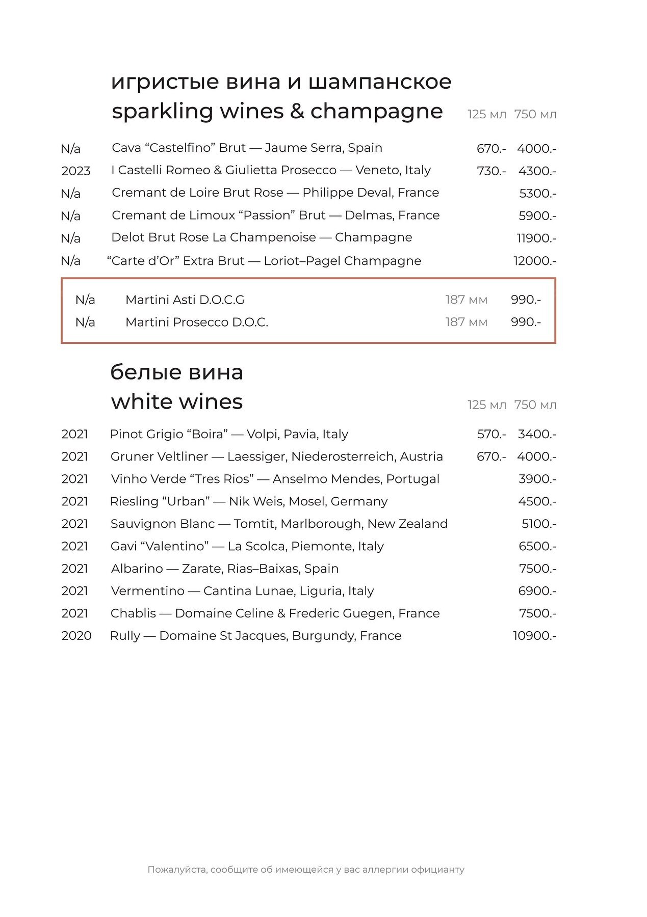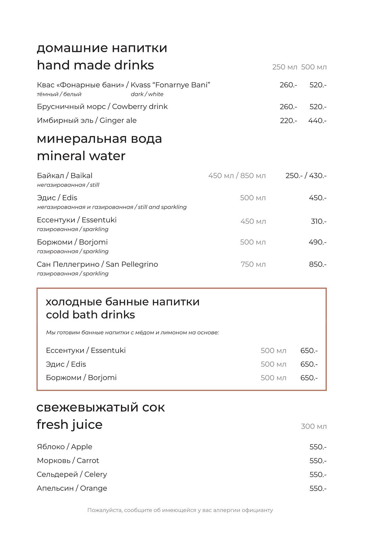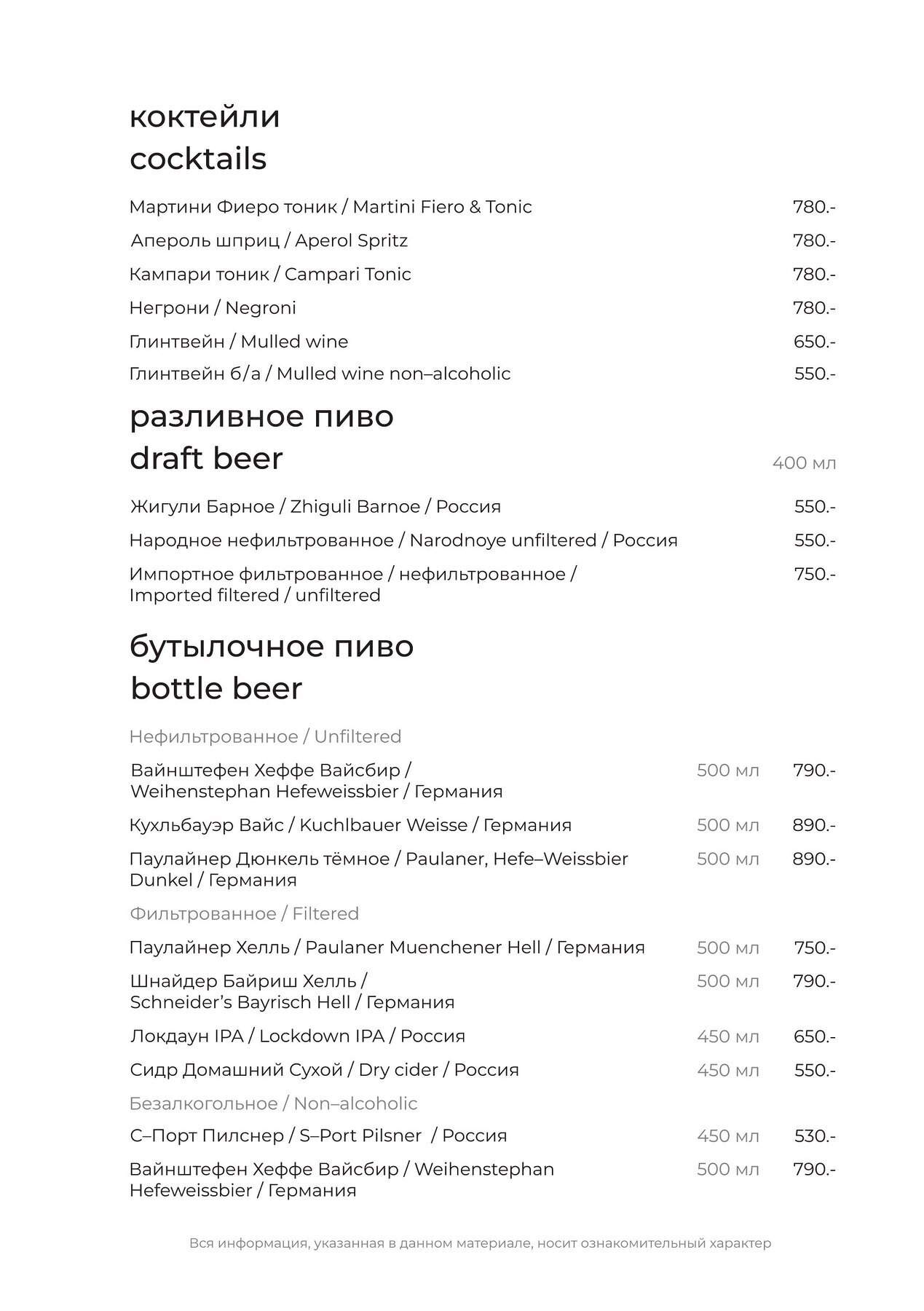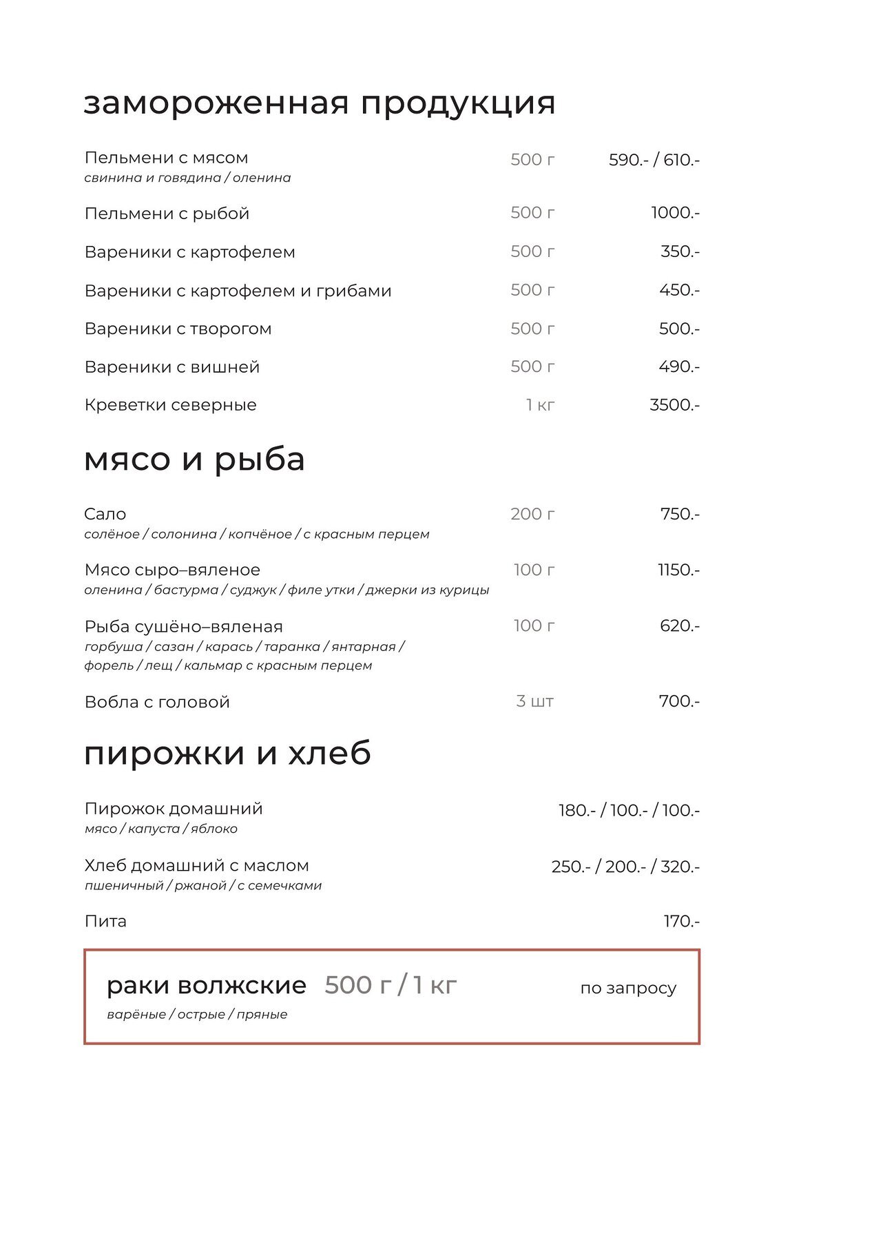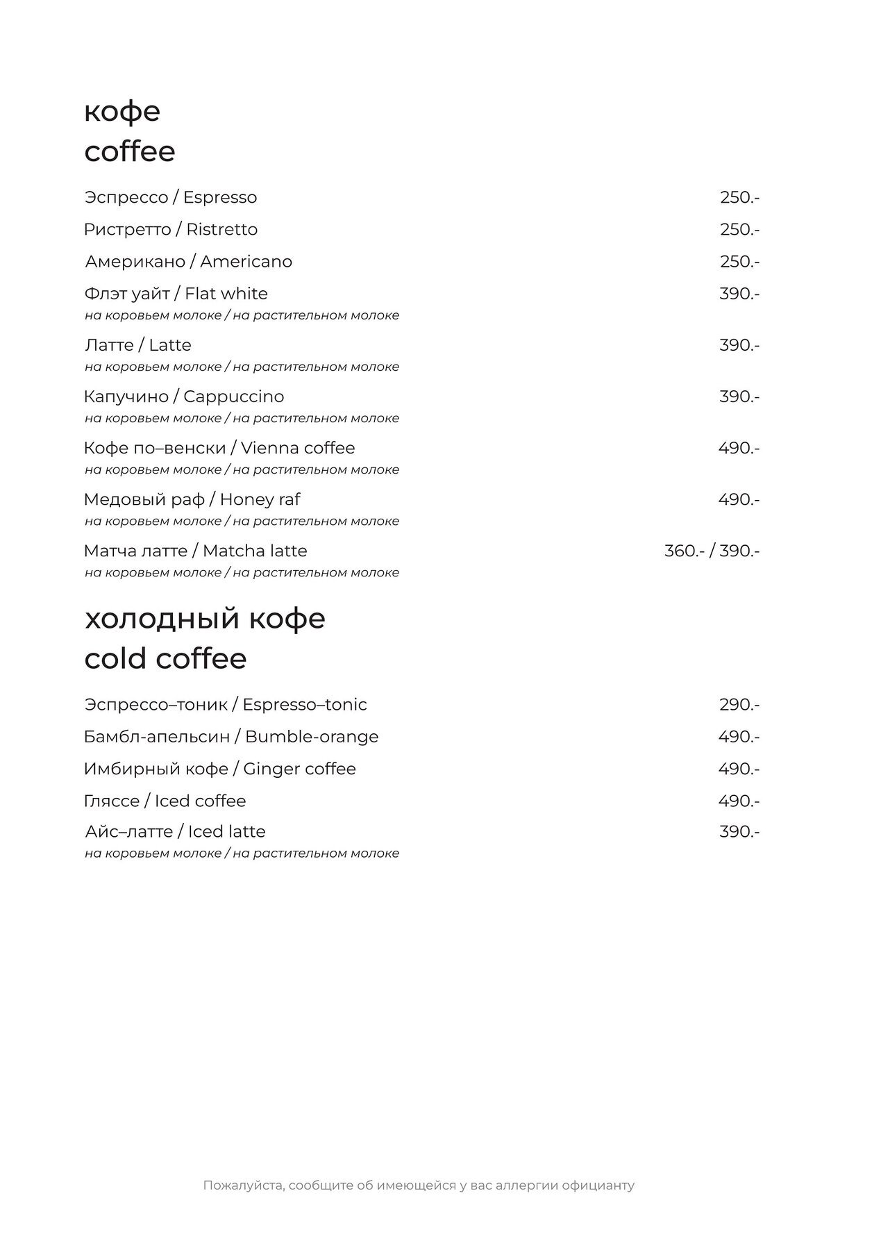 Меню и цены