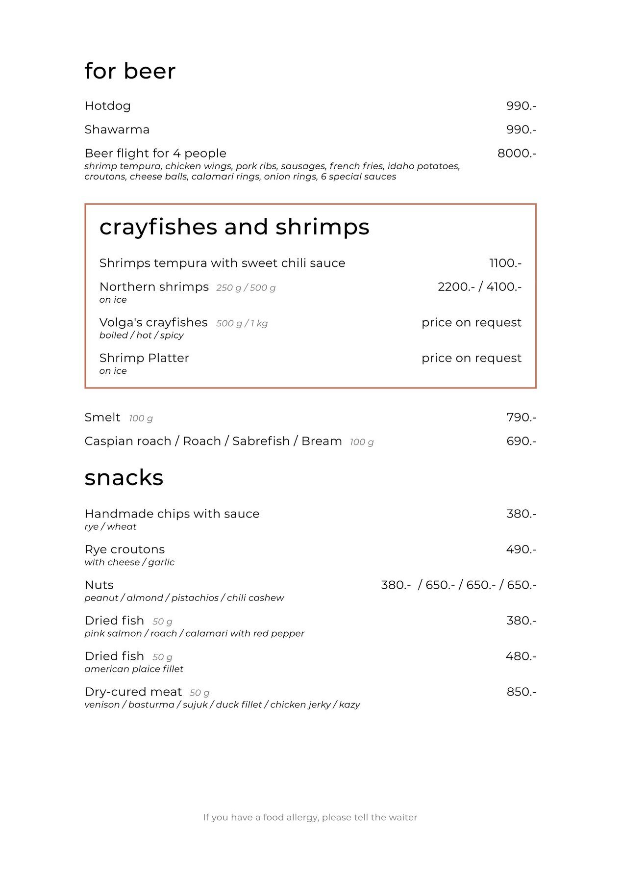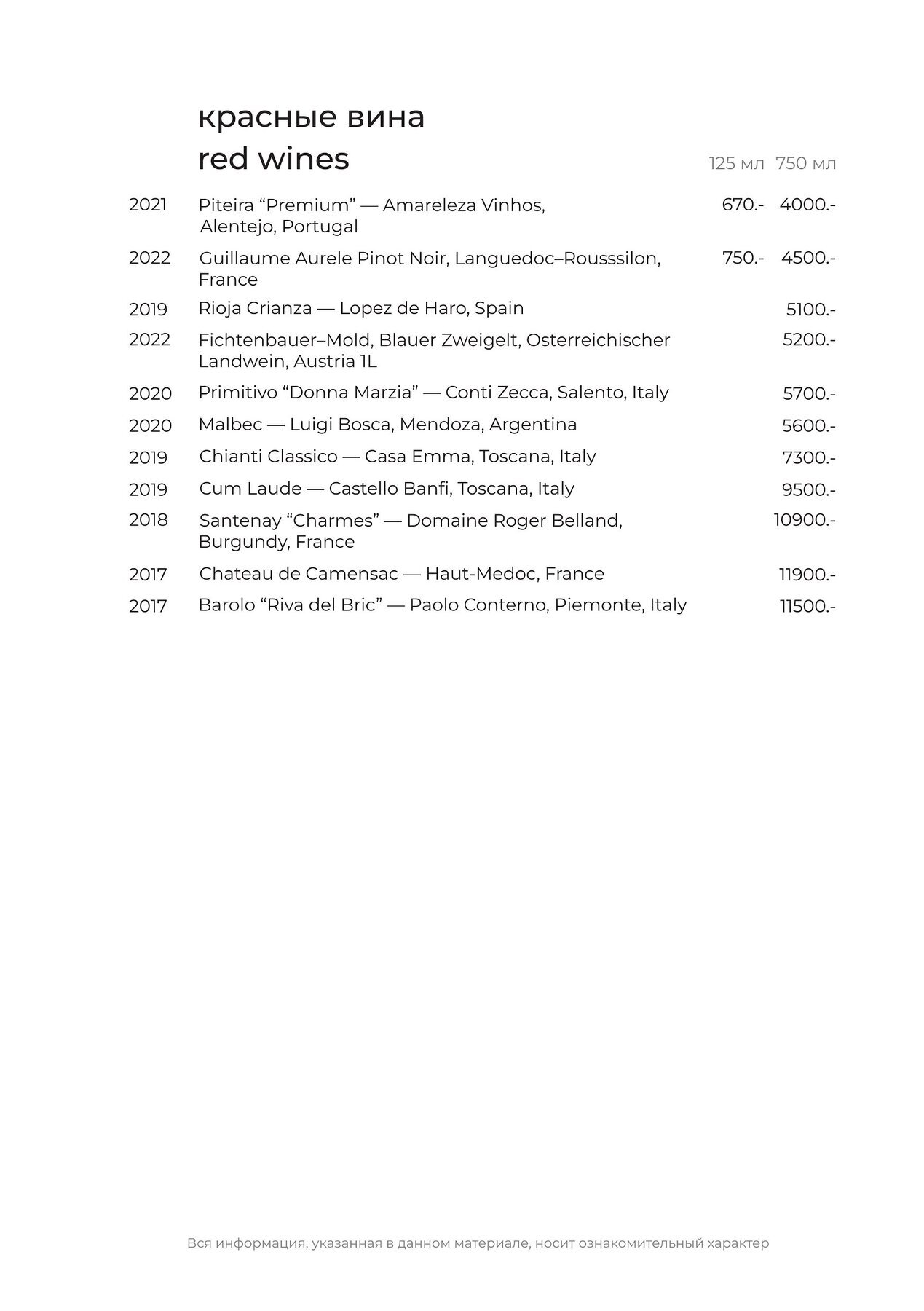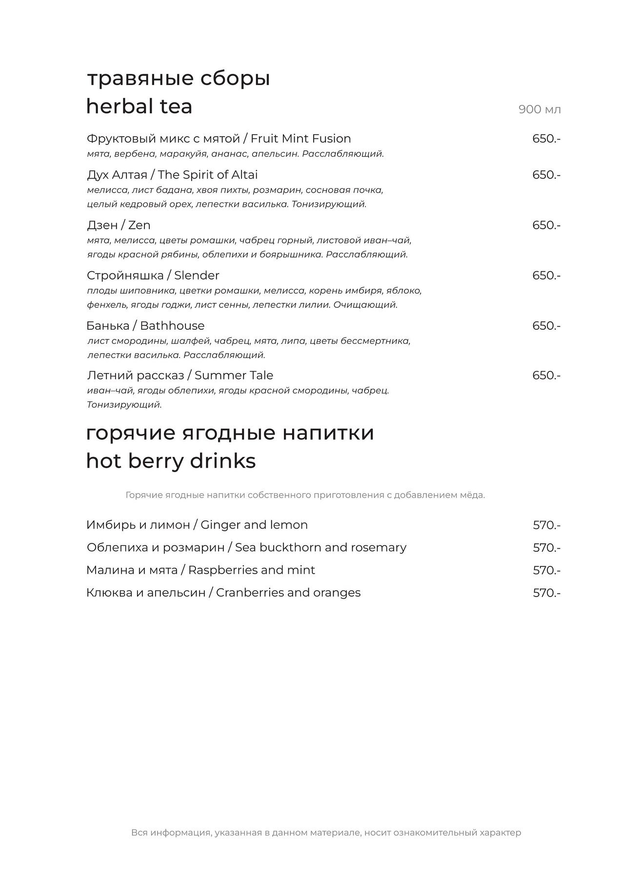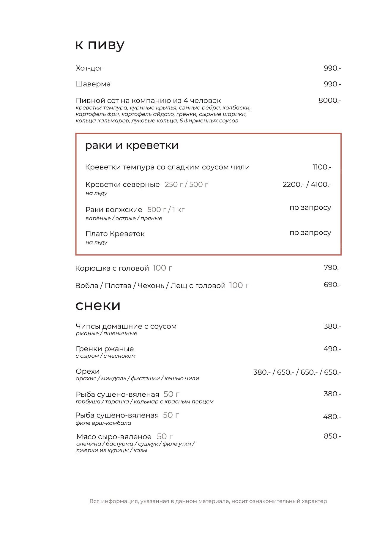 Меню и цены