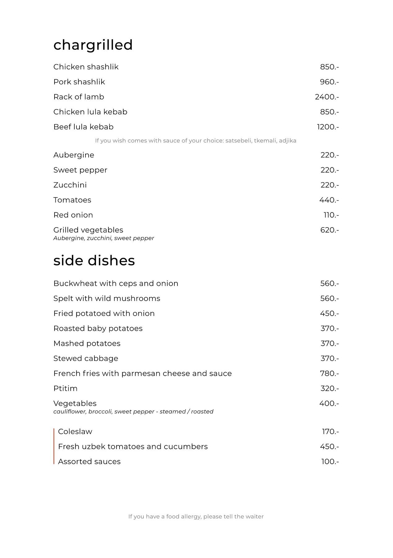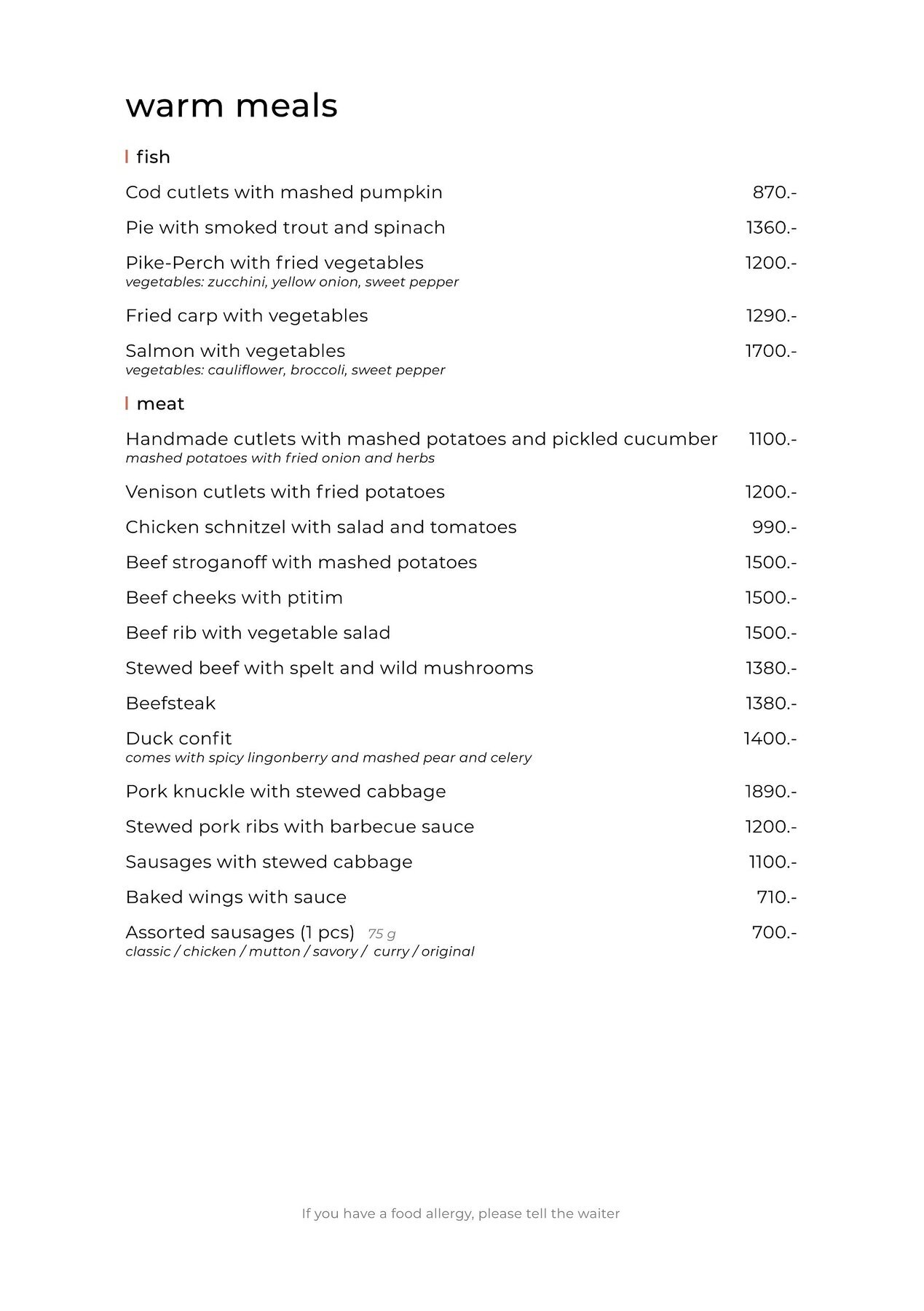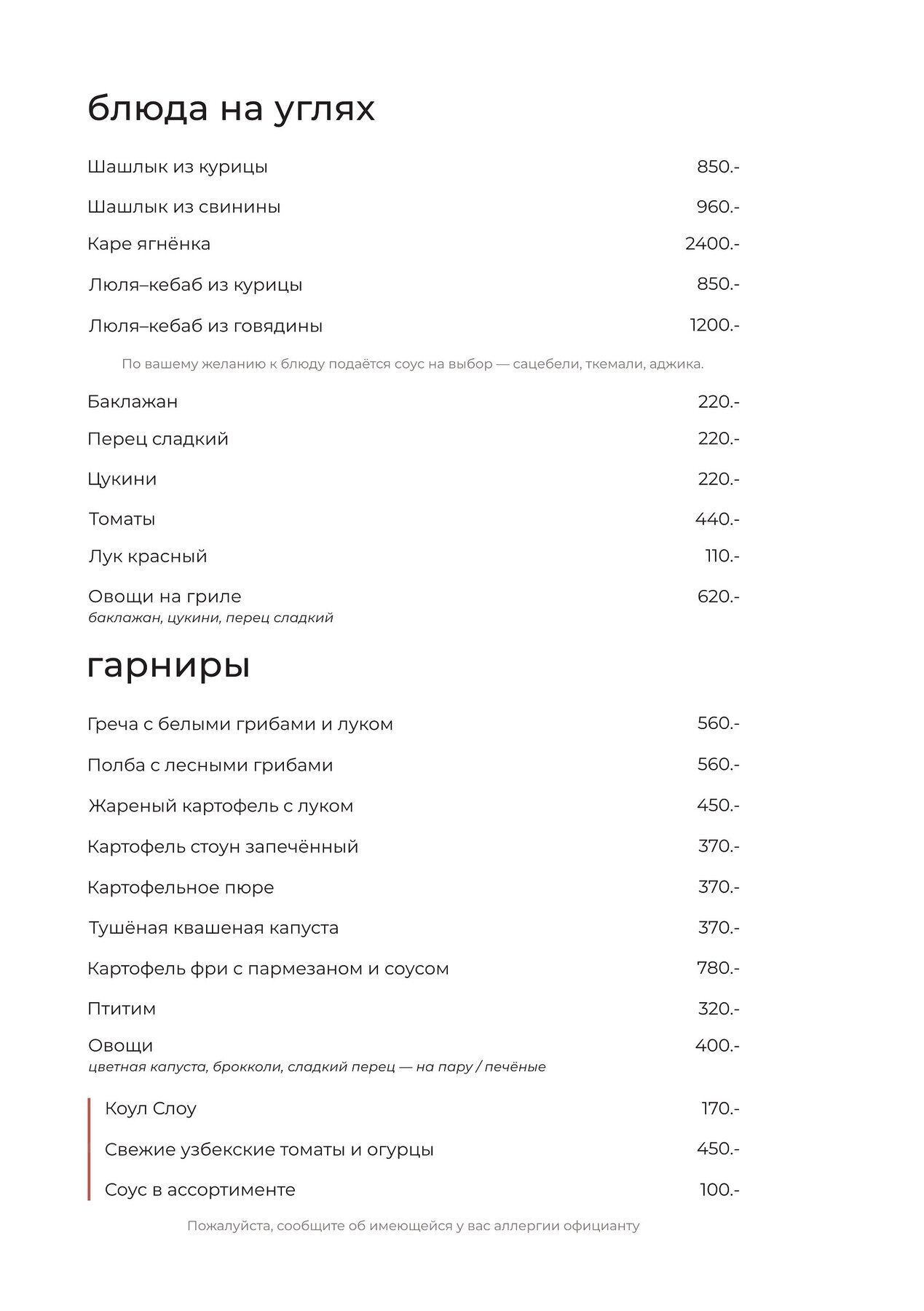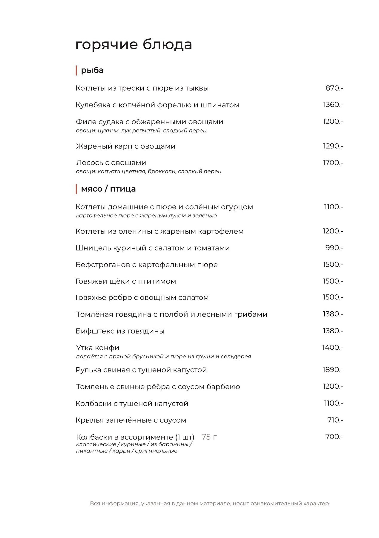 - Для детей: Детское меню