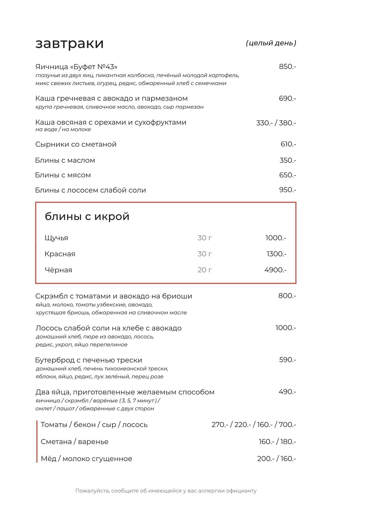 - Завтрак: Весь день