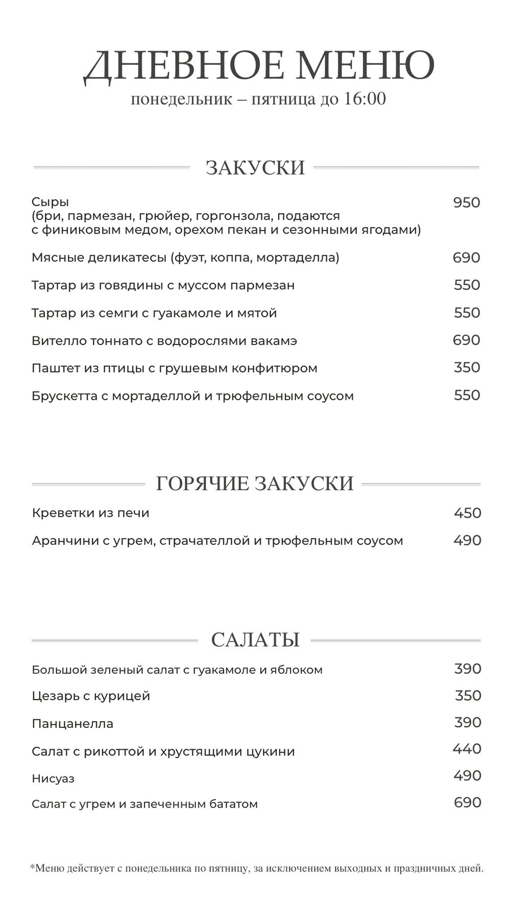 Меню и цены ресторана Кэф на набережной реки Мойки фото 1