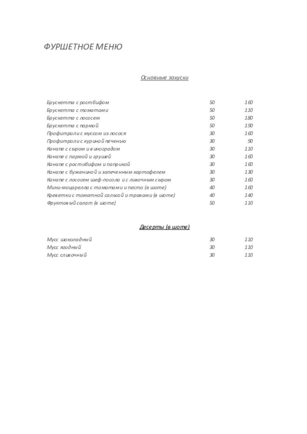 - Фуршет на персону, руб.: 1 500