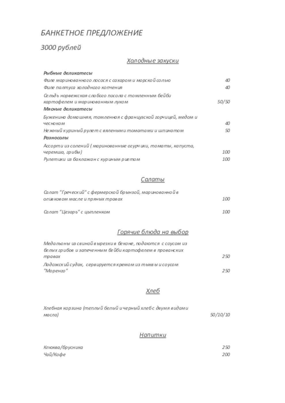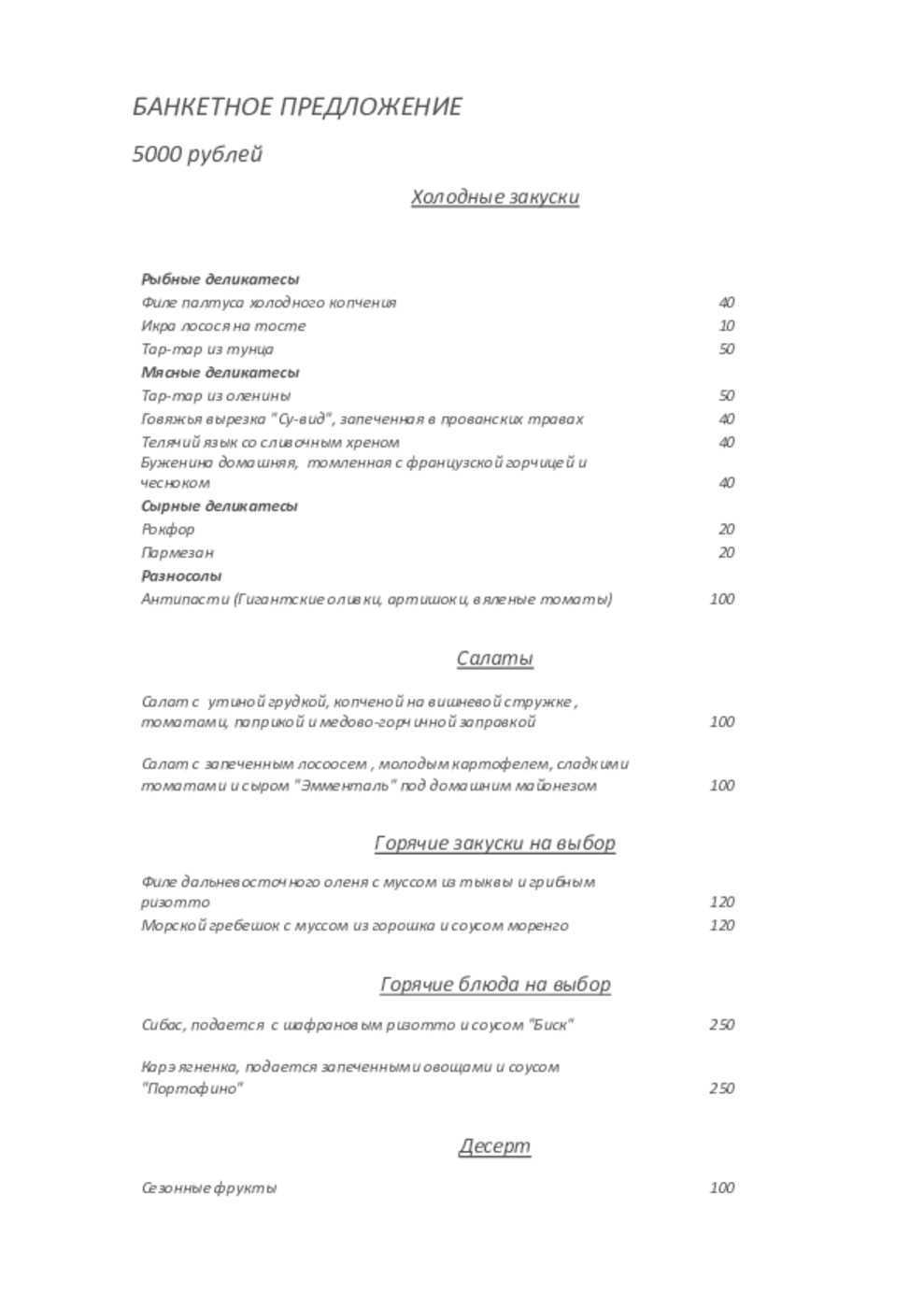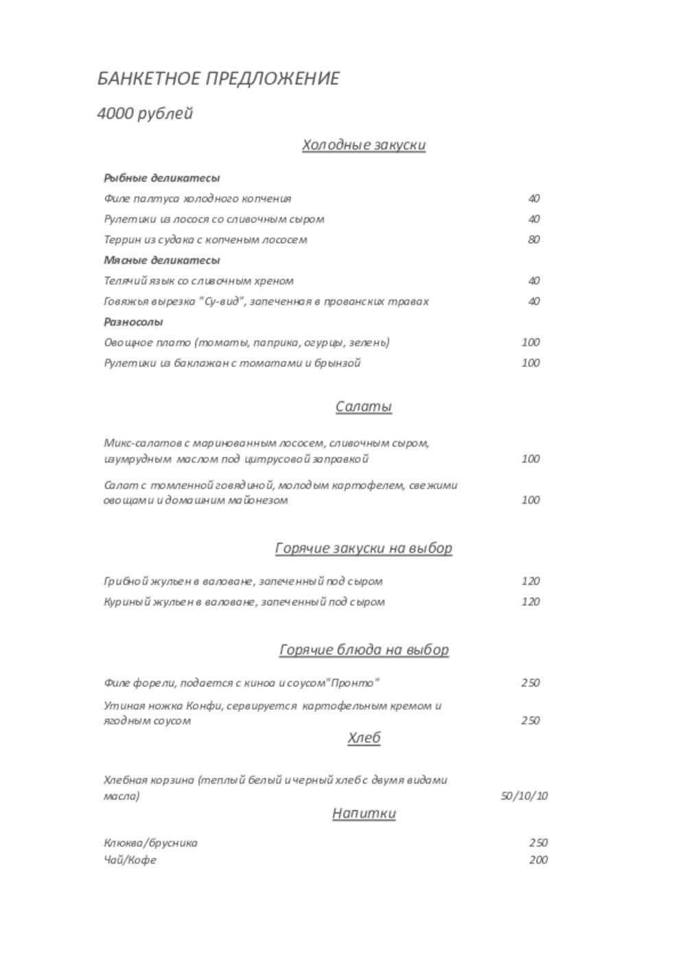 - Банкет на персону, руб.: 3 500