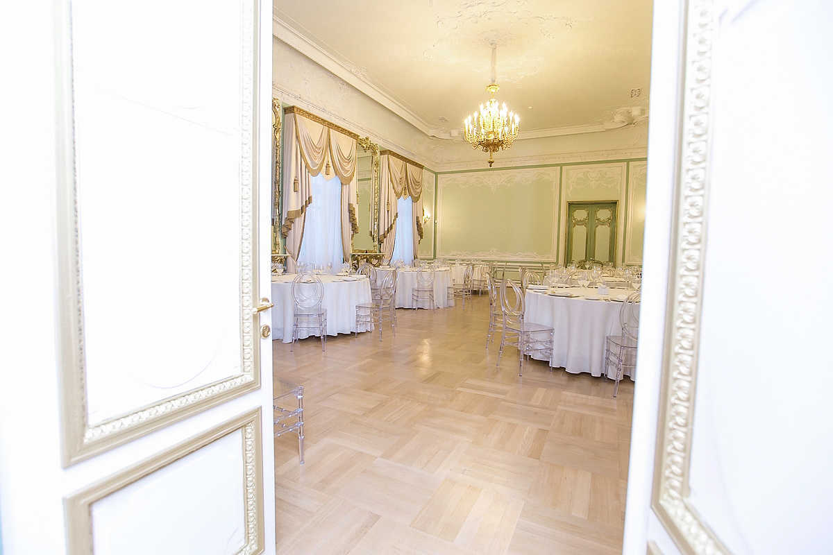 - Залы и места: 1 эт.: банкет на 60 п/м, фуршет до 80 п/м; 2 эт.: Розовый зал: банкет на 35 п/м, фуршет до 60 п/м; Зеленый зал: банкет на 70 п/м, фуршет до 120 п/м; Каминный зал: банкет 35 п/м, фуршет до 60 п/м; есть SPA зона