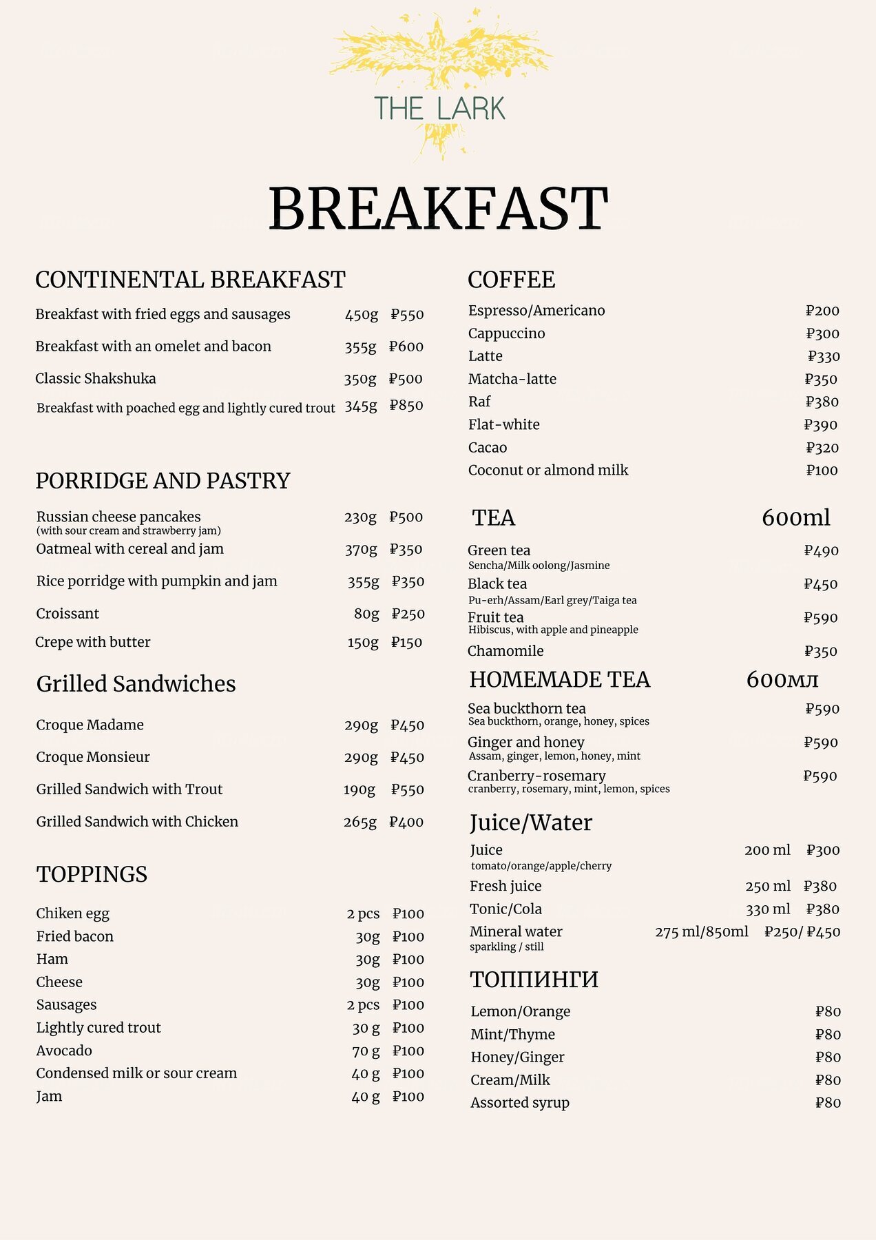 не посещая официальный сайт ресторана The Lark